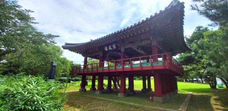 등나무운동장 맞은편에는 2021년에 보물로 승격한 한풍루가 있어 이곳도 꼭 들러봐야 한답니다. 무주 한풍루는 전주의 한벽당(寒碧堂), 남원의 광한루(廣寒樓)와 더불어 호남의 삼한(三寒)으로 꼽히는 명승이었다고 해요. 조선 전기의 문장가 성임의 〈한풍루시 寒風樓詩〉가 전하여지고 있을 만큼 경관이 아름답지요.