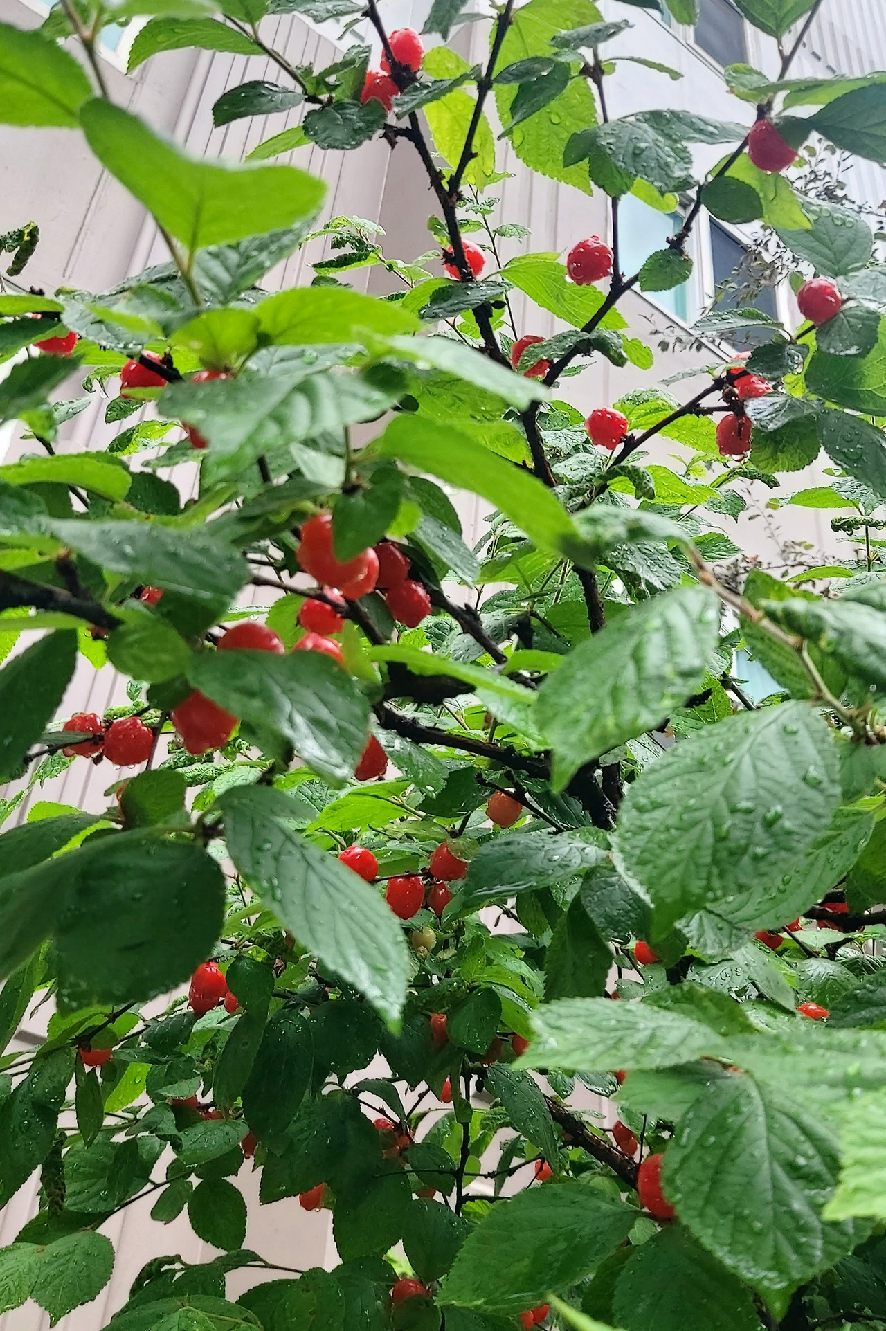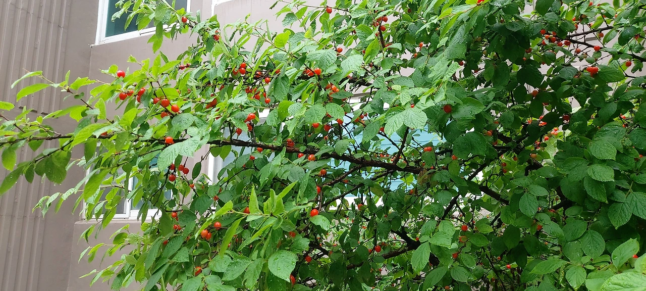 보통은 6월에 붉게 익는데 올해는 꽃이 빨리 핀 만큼 열매도 빨리 익어 5월 중순부터 익은 열매가 보이기 시작했다. 아파트단지 안에 수령이 20년 넘은 것으로 추정되는(동대표가 아파트 입주하던 17년 전에 3년생쯤 되는 묘목을 심었으니) 앵두나무가 있어 산책길에 오다가다 익은 앵두가 보이면 몇 개씩 따왔다.