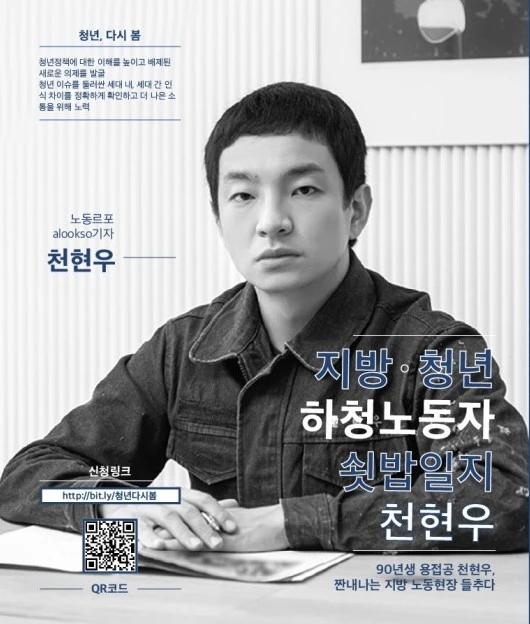 그는 1990년 마산에서 태어난 90년대생이다. 삶의 대부분을 고향에서 보냈고, 공고를 거쳐 한국폴리텍7대학을 졸업한 뒤 2011년부터 생계를 잇기 위해, 어머님이 사기를 당해 진 빚을 갚기 위해 공장에서 쉴 틈 없이 일했다. 그렇게 현장 기술직 노동자의 팍팍한 삶을 살아오던 그가 2021년부터 주간경향, 미디어오늘, 피렌체의 식탁, 조선 일보에 칼럼을 기고하기 시작했고, 지금은 미디어 스타트업 alookso(얼룩소)에서 기자로 일하고 있다. 그의 삶에 어떻게 이런 반전이 일어나게 된 걸까?