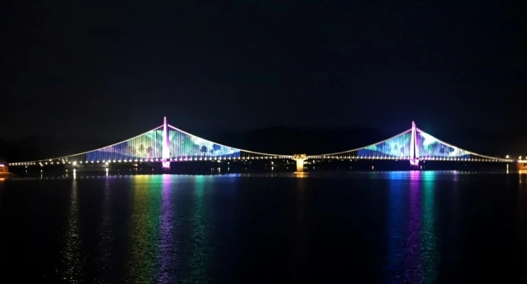출렁다리에는 2만개의 미디어 파사드(LED 자체 발광 방식)가 설치됐고, 출렁다리 앞에는 2020년 4월에 설치된 음악분수가 자리잡고 있어서 밤에는 LED 조명 2만여 개가 만들어내는 미디어파사드쇼가 펼쳐지는 환상적인 야경을 즐길 수 있어 많은 분들이 찾는 논산 명소랍니다.