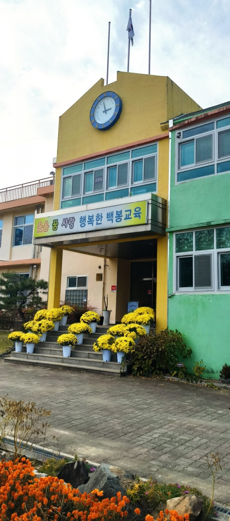 운동장을 빙 둘러 작은 은행나무들이 줄지어 서있고, 멀리로 플라타너스 몇 그루가 보이는 작은 학교가 참 커 보였다.