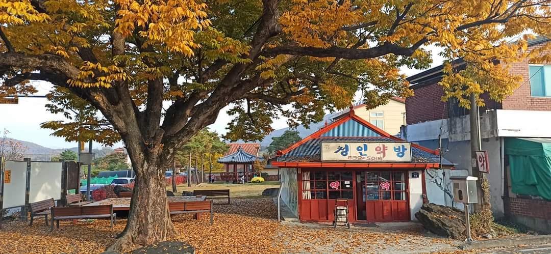 괴산에 63년 된 청인약방이 있다고 하여 그곳을 찾아가던 날은 단풍이 곱게 물든 가을이었다. 가는 길에 오래된 고목이 있다는 초등학교 두 곳을 들르다 보니 괴산의 새로운 면모를 확인하게 되었다.