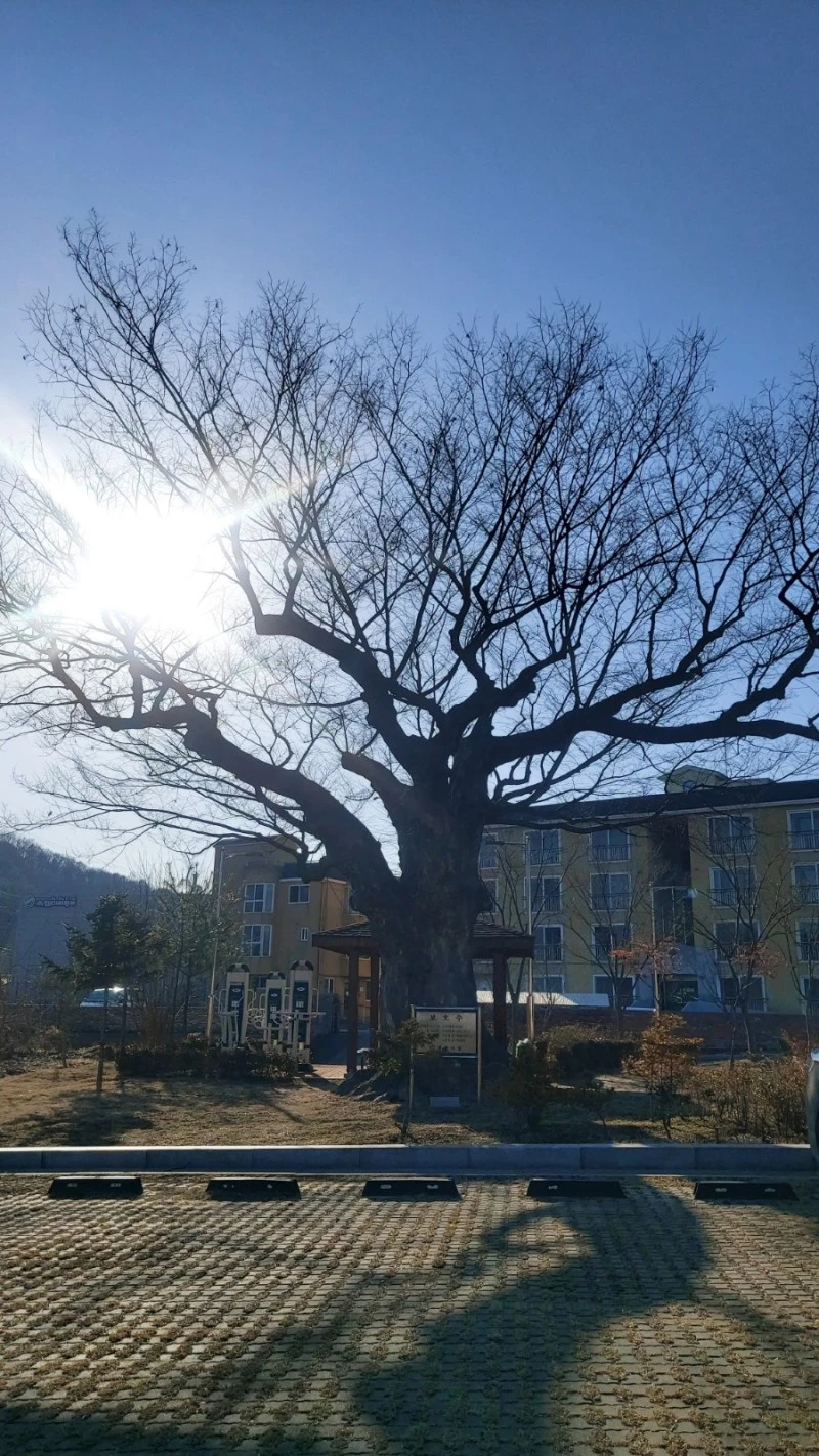 입암마을에는 선바위 앞의 보호수 말고도, 보호수가 하나 더 있는데 공단 한가운데 너른 주차장 한켠에 있어요. 400년 된 느티나무로 이 나무도 정말 멋지더라구요. 공단이 들어서기 전에는 한적한 시골마을을 지켜주던 노거수였을 텐데, 지금은 바삐 돌아가는 공단에서 근무하는 사람들의 휴식처로 자기매김하고 있는 듯 했답니다.