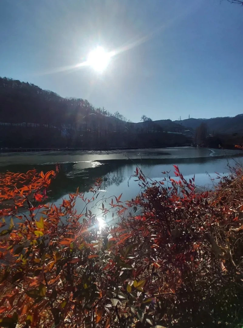 호수 한 바퀴 다 도는 데 30분도 안 걸릴 정도로 작은 규모라 부담없고, 호수 위를 떠다니는 겨울철새들을 바라보며 뜻모를 대화를 나눠보는 재미도 있어요. 호수 물 아래는 팔뚝만큼 큰 잉어들이 노닐고 있어, 아이들과 함께 잉어밥을 주는 재미도 즐길 수 있답니다.