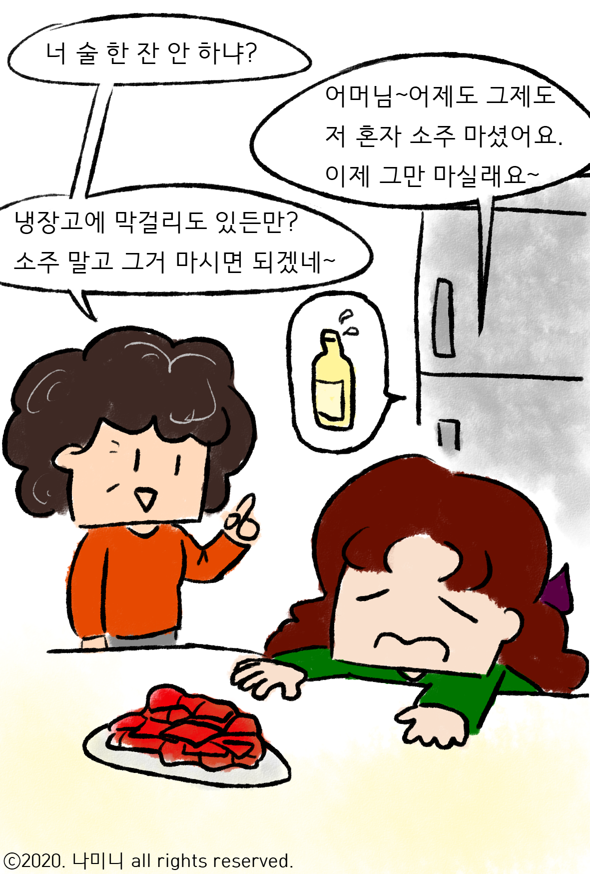 "어머님~ 어제도 그제도 저 혼자 소주 마셨어요. 이제 그만 마실래요~" 하니까