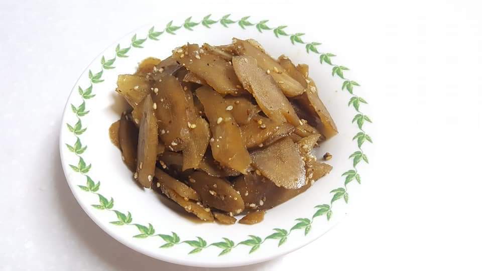 "와~ 우엉 껍질을 철수세미로 닦으니까 이렇게 깨끗하게 벗겨지네요. 맨날 감자 껍질 깎는 칼로 벗겼는데~"