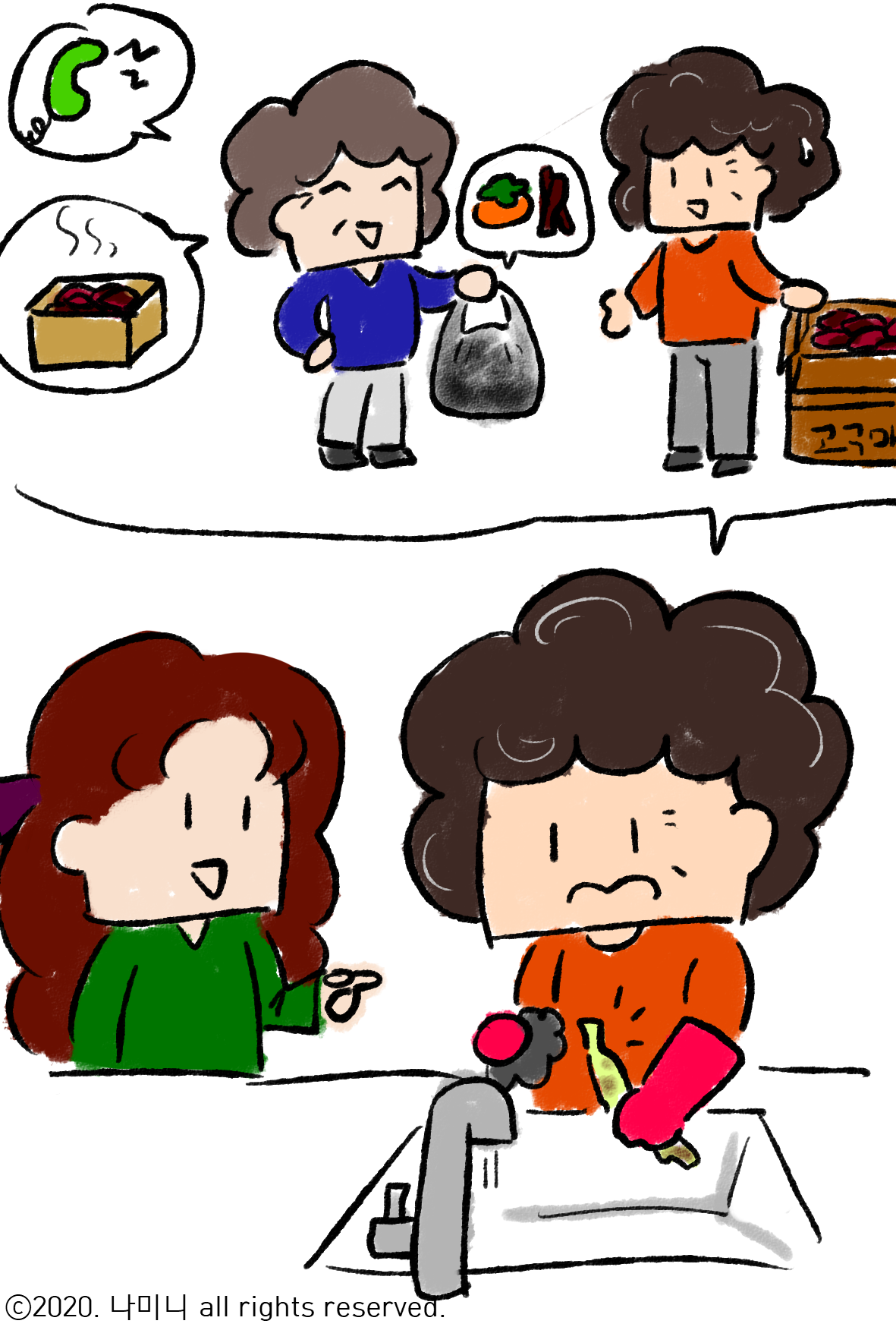 오전 일찌감치 손수레를 끌고 나갔다 오신 어머님께서 주방에서 뭔가를 철수세미로 닦고 계셨다.
