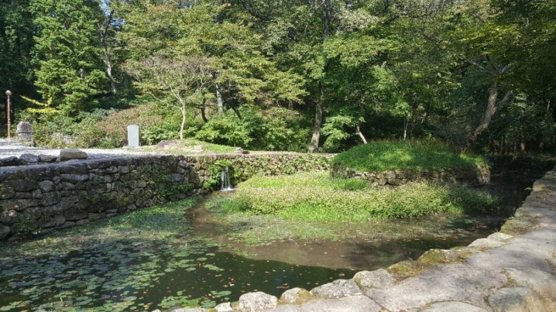여름 홍수에는 갑자기 불어난 물줄기를 휘돌아 감아 저장하는 과정에서 수위의 완급을 조절하는 역할도 담당한단다. 연못은 최근에 단장됐지만 연못 터는 도선국사가 만들었다는 설에 걸맞게 연못 주위로 수십 척 높이의 삼나무와 아름드리 활엽수들이 도열해 있다.