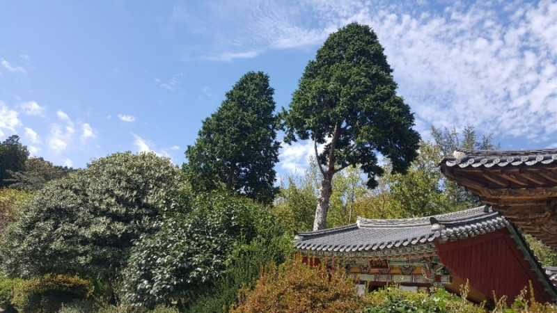 선암사에서 은목서 다음으로 인상적인 나무가 가지를 옆으로 구불구불 편 600년 된 와송과 불조전 왼쪽에 하늘을 찌를 듯 솟은 측백나무 두 그루였다. 처음엔 편백나무인 줄 알았는데 종무소 직원 말씀이 측백나무라고. 두 그루 측백나무가 어찌나 멋진지 커다란 사진기를 들고 출사 나오신 분들이 주변을 배회했다.
