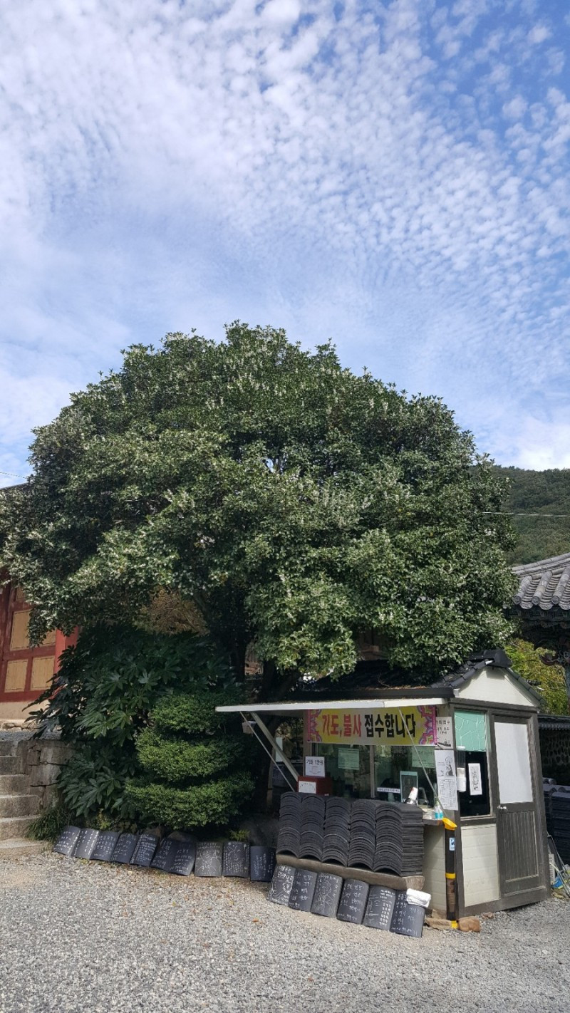세상에나~~~! 선암사 곳곳에 커다랗고 둥근 모습의 은목서 나무가 하얀 꽃을 눈처럼 바닥에 흩뿌리며 매혹적인 향기를 뿜어내고 있었다. 그날 선암사를 찾은 많은 탐방객들이 이 좋은 향이 뭐냐고 하면서 코를 벌름대며 향기의 근원을 찾아헤맸고, 난 꽃에 일가견이 있으신 페친 덕분에 은목서 향기라고 당당히 일러주었다. (중간중간 커다란 은행나무가 응가를 푸지게 퍼질러놔서 똥냄새도 바람결에 맡긴 했으나 은목서 향기가 압도적이었다. 대체로 은행나무는 사찰 바깥쪽에 한두 그루씩 서있었고, 은목서나무는 사찰 안쪽에 두루 두루 자리잡고 있다)