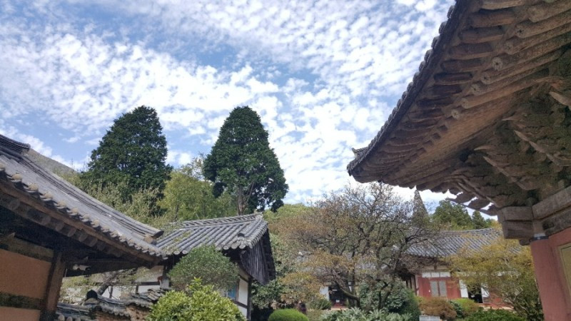 종무소 앞의 오래된 처진올벚나무(수양벚나무)와 전나무로 추정되는 침엽수도 보기좋았고, 원통전 뒤편과 각황전 사이의 선암매도 볼만 하다.