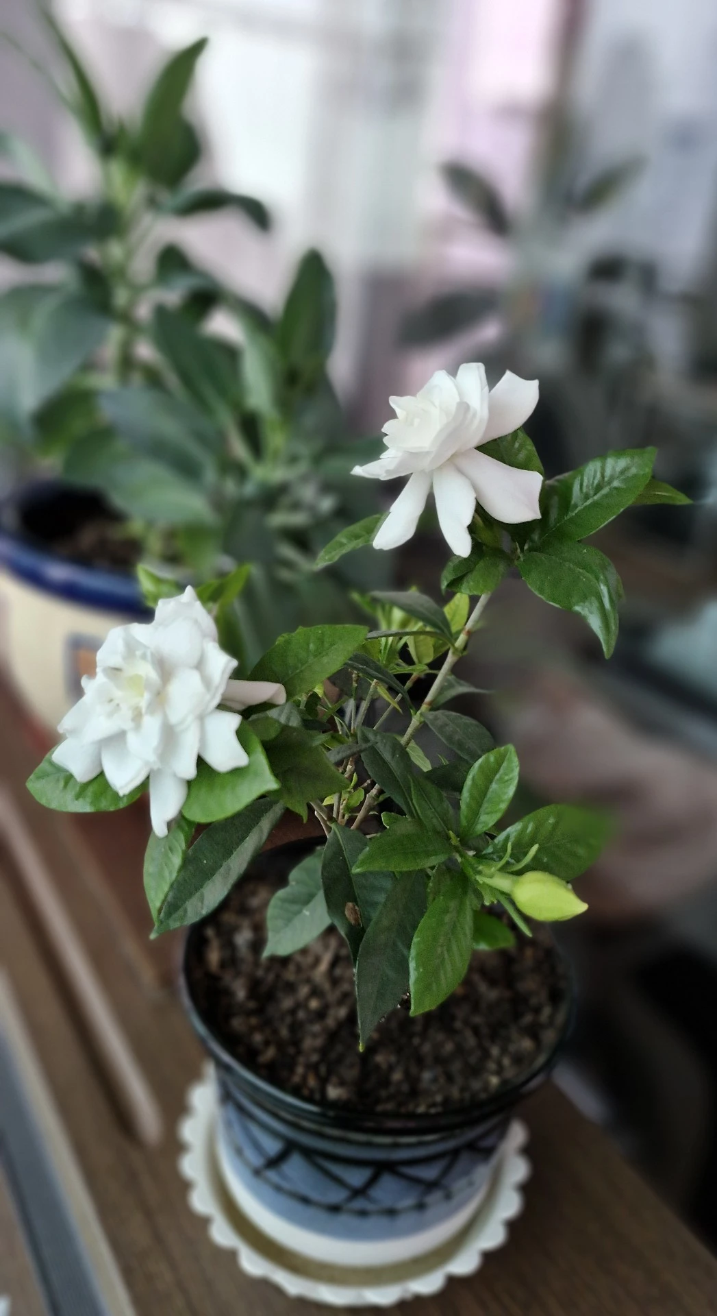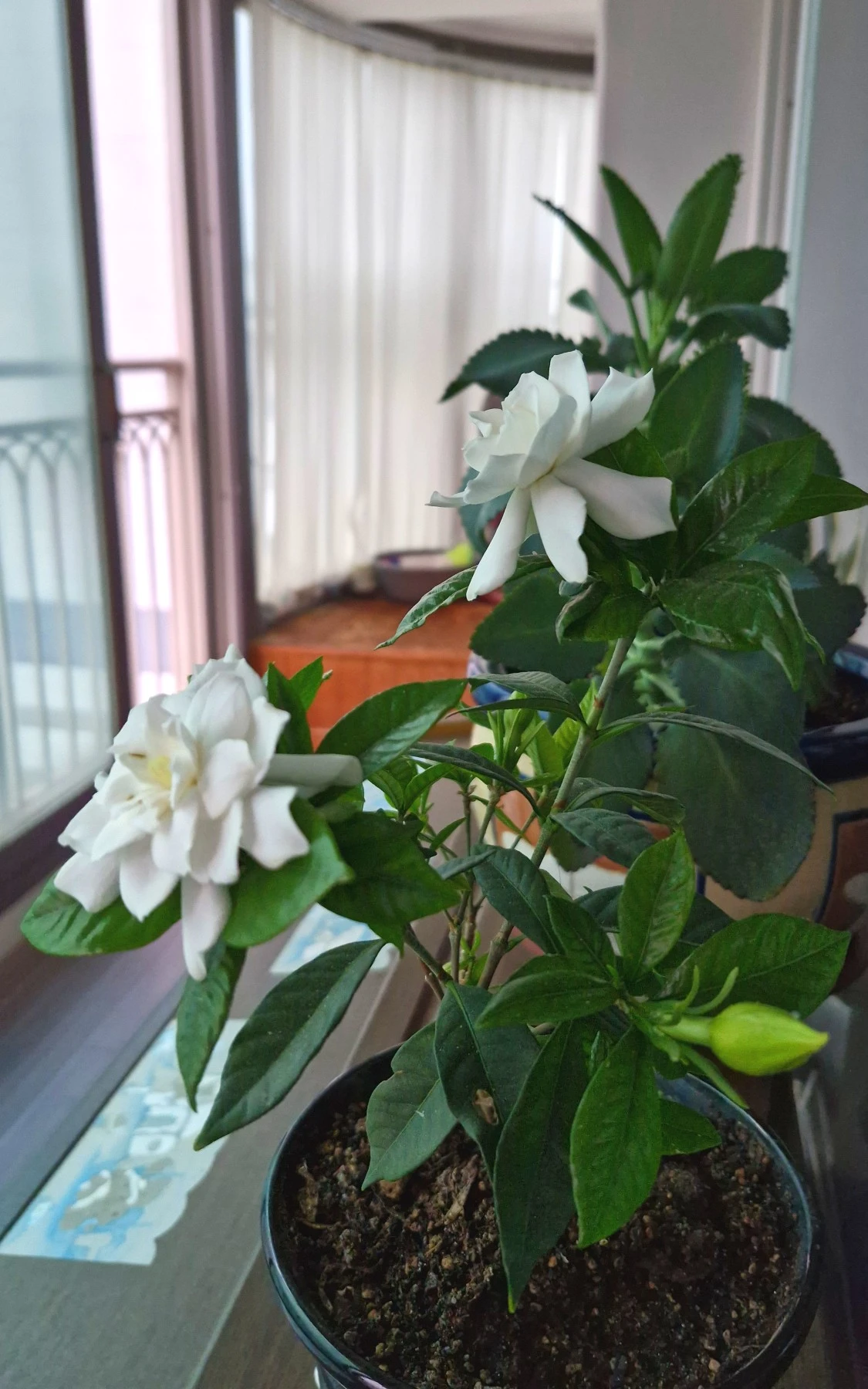 * 장마의 시작을 알리는 치자꽃이 장마 같은 비가 내린 첫날 아침에 피었다. 어머님의 오랜 정성으로 작년에 피었다 진 뒤에도 죽지 않고 올해 꽃봉오리를 맺어 한 송이 두 송이 피기 시작했다. 모두 다섯 송이가 필 예정이다.어머님이 치자에 들인 공도 이렇게 꽃으로 피어나 되갚음하는데, 사람에게 들인 공은 말해 무엇하랴.