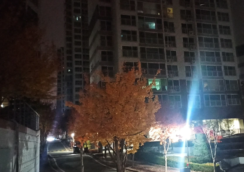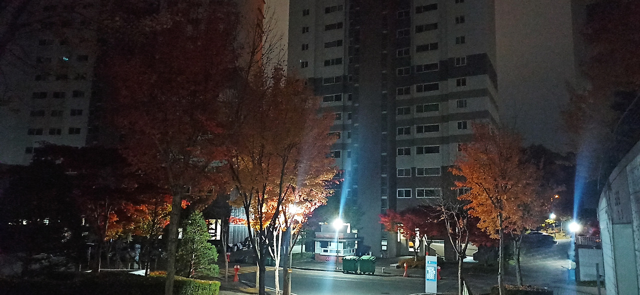 요 며칠 날이 무척 차가워진데다 감기기운이 있어서 이틀 정도 새벽운동을 나가지 않았다. 오늘 재활용쓰레기 분리배출하는 날이라 잠시 버리러 나갔다가 의외로 날이 따스해 단지 안을 한 바퀴 돌았다. 하현이 하늘 높이 떠있긴 했으나 구름이 많아 자주 가렸고, 새벽 어둠 속에서도 가로등 불빛 속에서 환하게 빛나는 나무들이 아름다웠다.