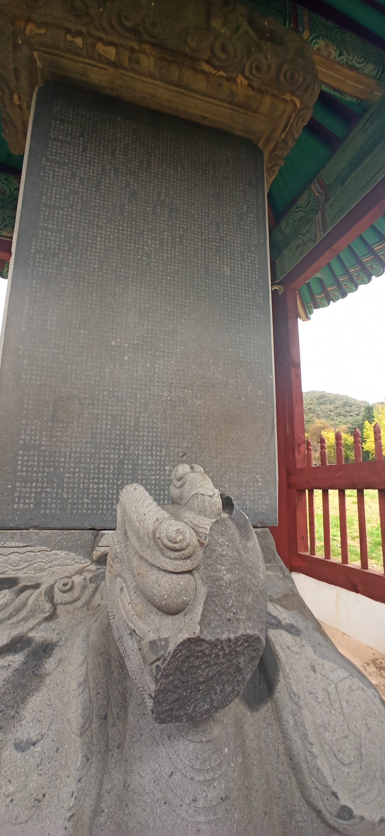 국보인 낭혜화상백월보광탑비는 따로 보호각을 만들어 보존에 신경을 쓴 모습이 역력하다. 탑비를 받치고 있는 거북의 얼굴이 깨져있어 좀 안타깝지만 남포오석을 사용한 비석은 대체로 양호하다. 10세기 초에 세워져 천 년을 버텨온 이 비석엔 5120여자의 긴 비문이 새겨져있는데, 최치원의 화려한 문장을 최인연이 해서체로 쓴 것이라고 한다.