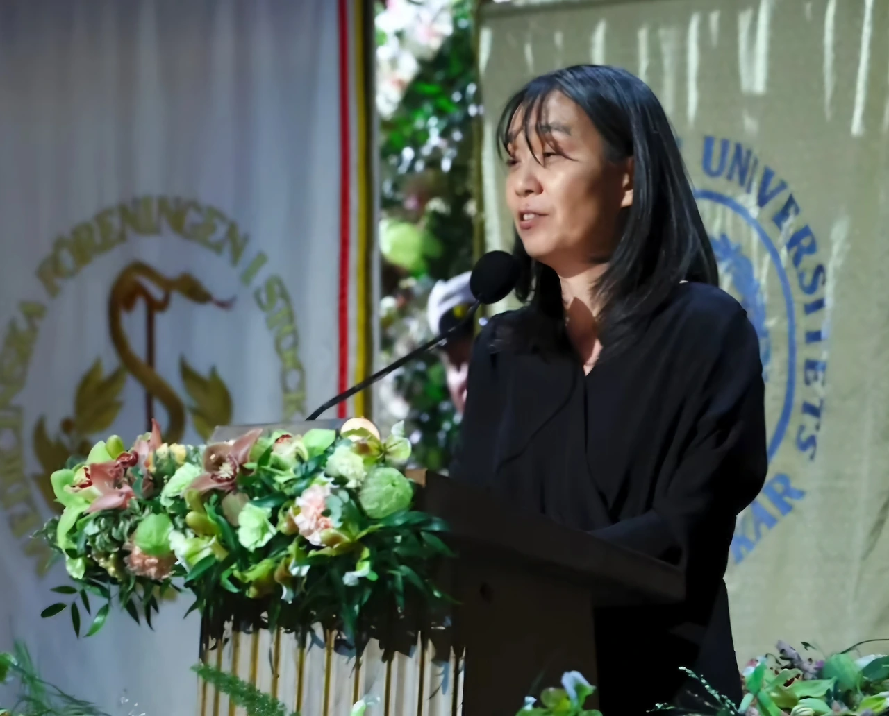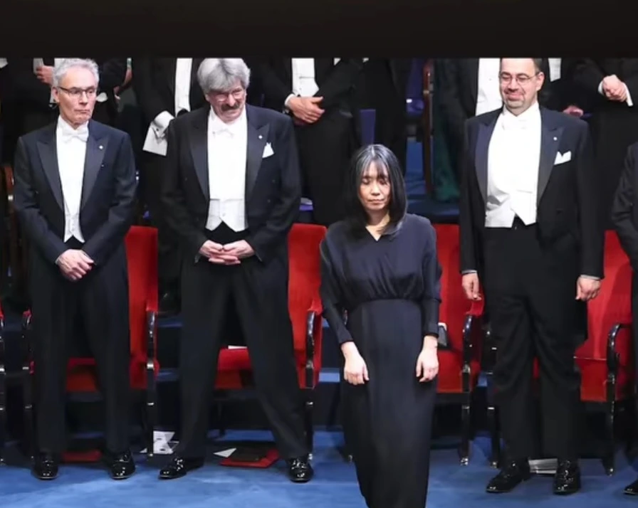 시상식은 국왕의 입장으로 시작됐습니다. 이어 오케스트라 연주로 모차르트의 행진곡이 울려 퍼지자 검은색 드레스를 입은 한강이 다른 수상자들과 함께 입장해 시상식장 무대 중앙 왼편에 앉았습니다. 한강은 부문별 시상 순서에 따라 물리학상, 화학상, 생리의학상 수상자들에 이어 네 번째로 호명됐어요.