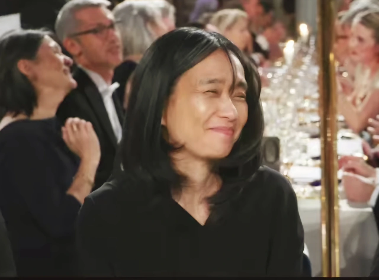 한림원 종신위원인 스웨덴 소설가 엘렌 맛손은 시상에 앞선 5분가량의 연설에서 한강의 작품들에 대해 "형언할 수 없는 잔혹성과 돌이킬 수 없는 상실감에 대해 말하고 있다"며 "궁극적으로는 진실을 추구하고 있다"고 평했습니다. 이어서 영어로 "친애하는 한강"이라고 부르며 "국왕 폐하로부터 상을 받기 위해 나와 주시기를 바란다"고 청했습니다.