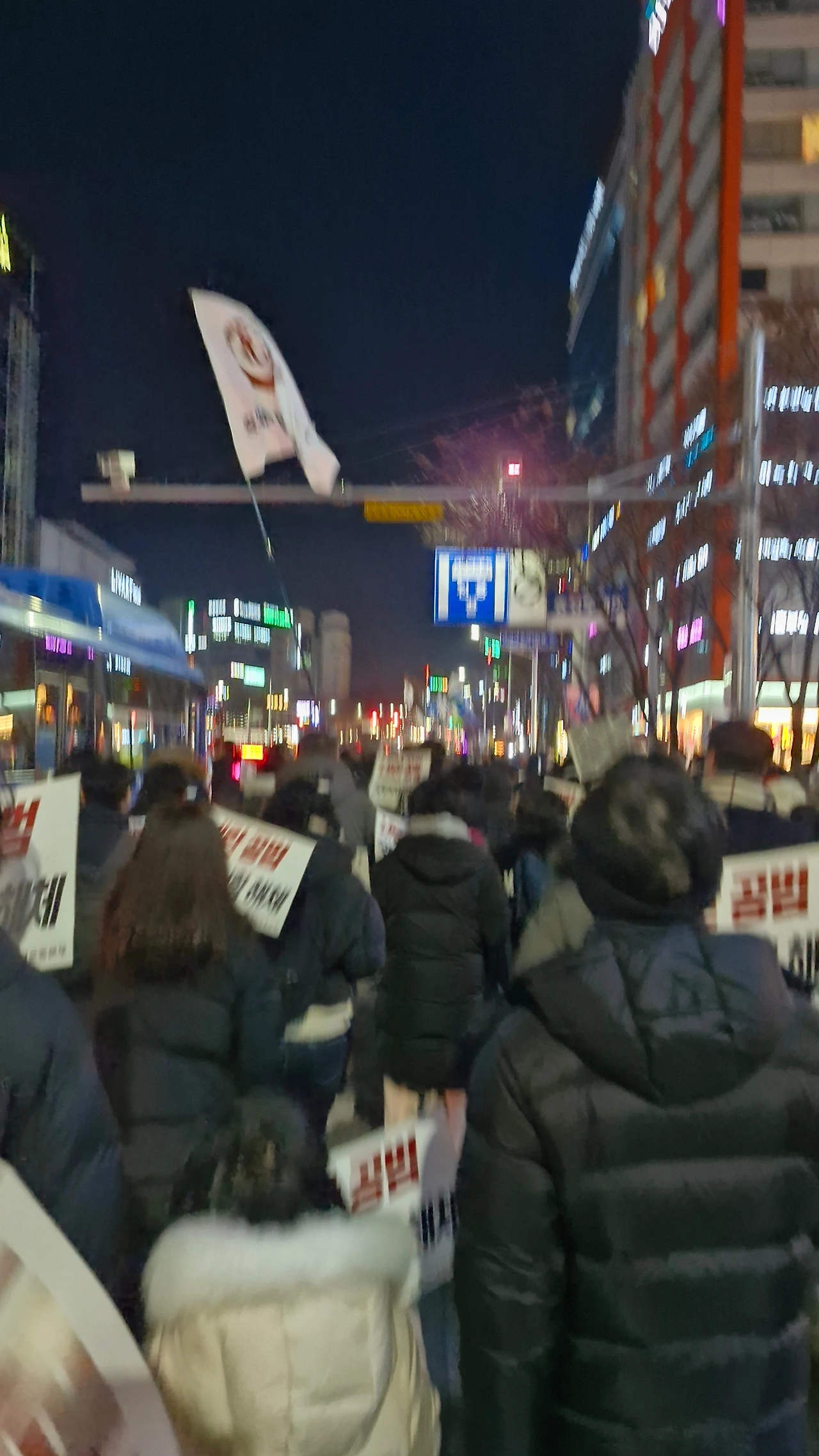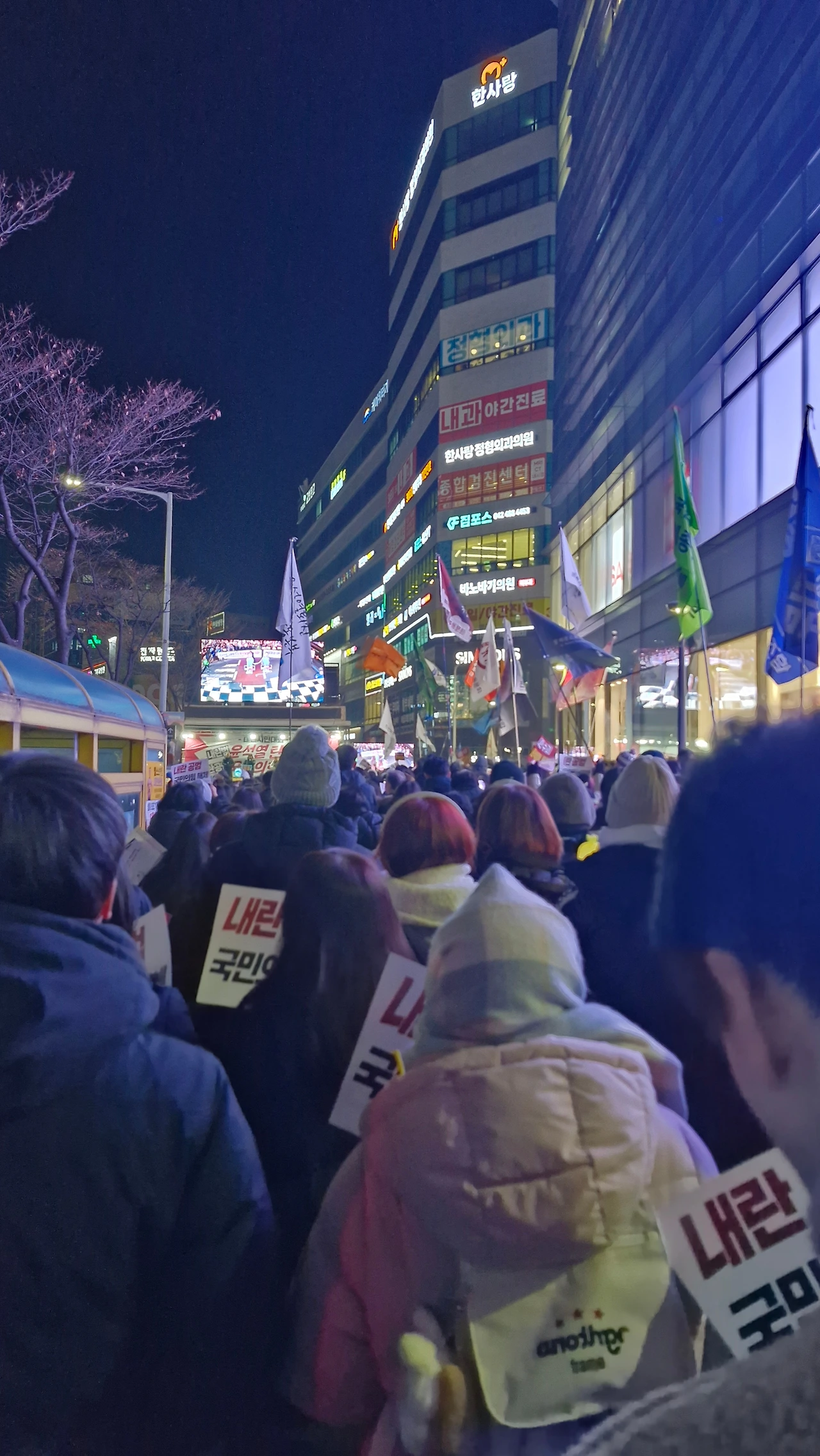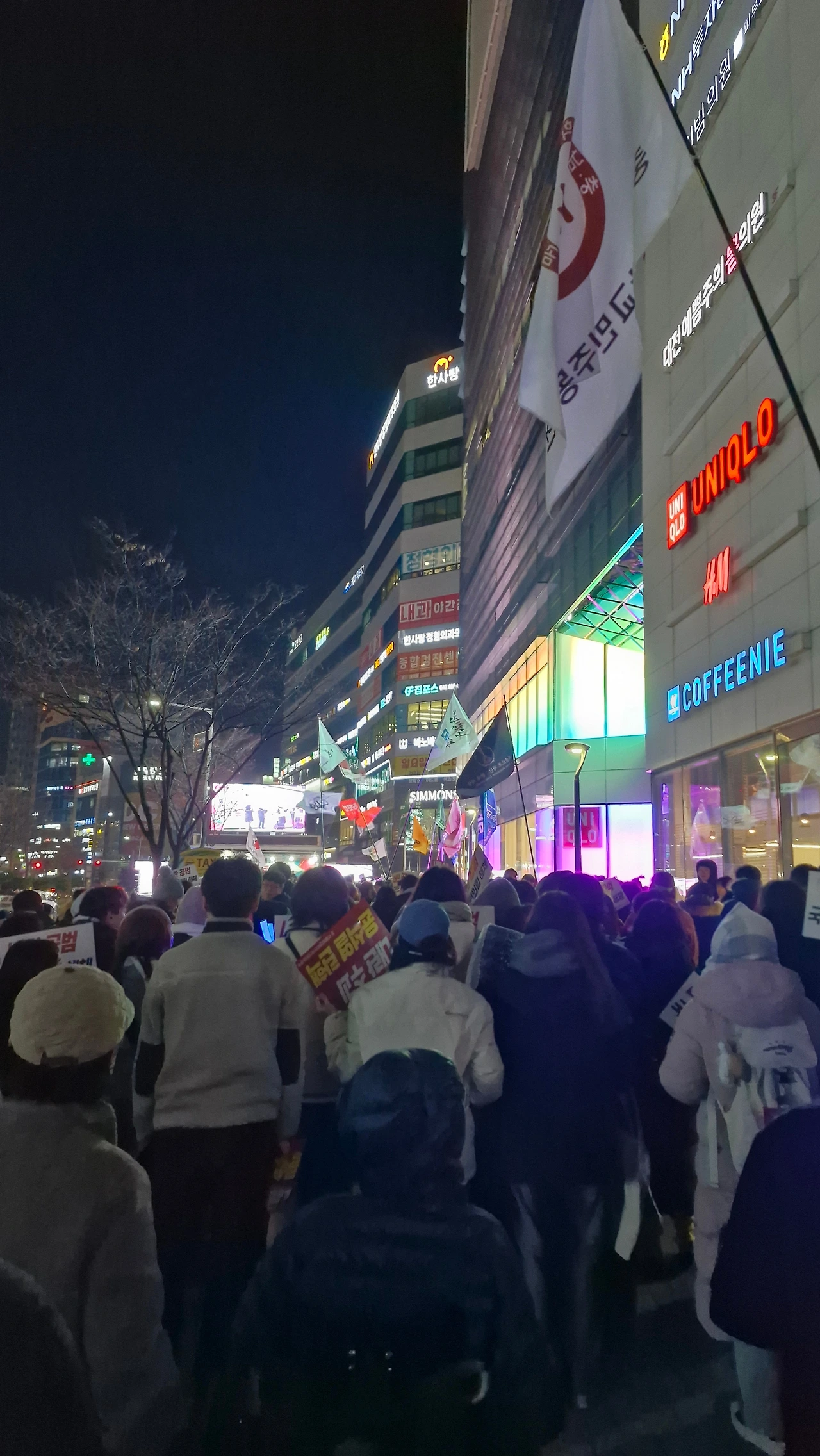 "내란범 윤석열을 탄핵하라! 내란공범 국민의 힘을 해체하라!"를 시민들과 함께 외치며 은하수네거리에서 시작해 이마트사거리를 거쳐 경성큰마을사거리까지 행진했다가 갤러리아 맞은편 은하수네거리에서 9시에 마무리를 했답니다.