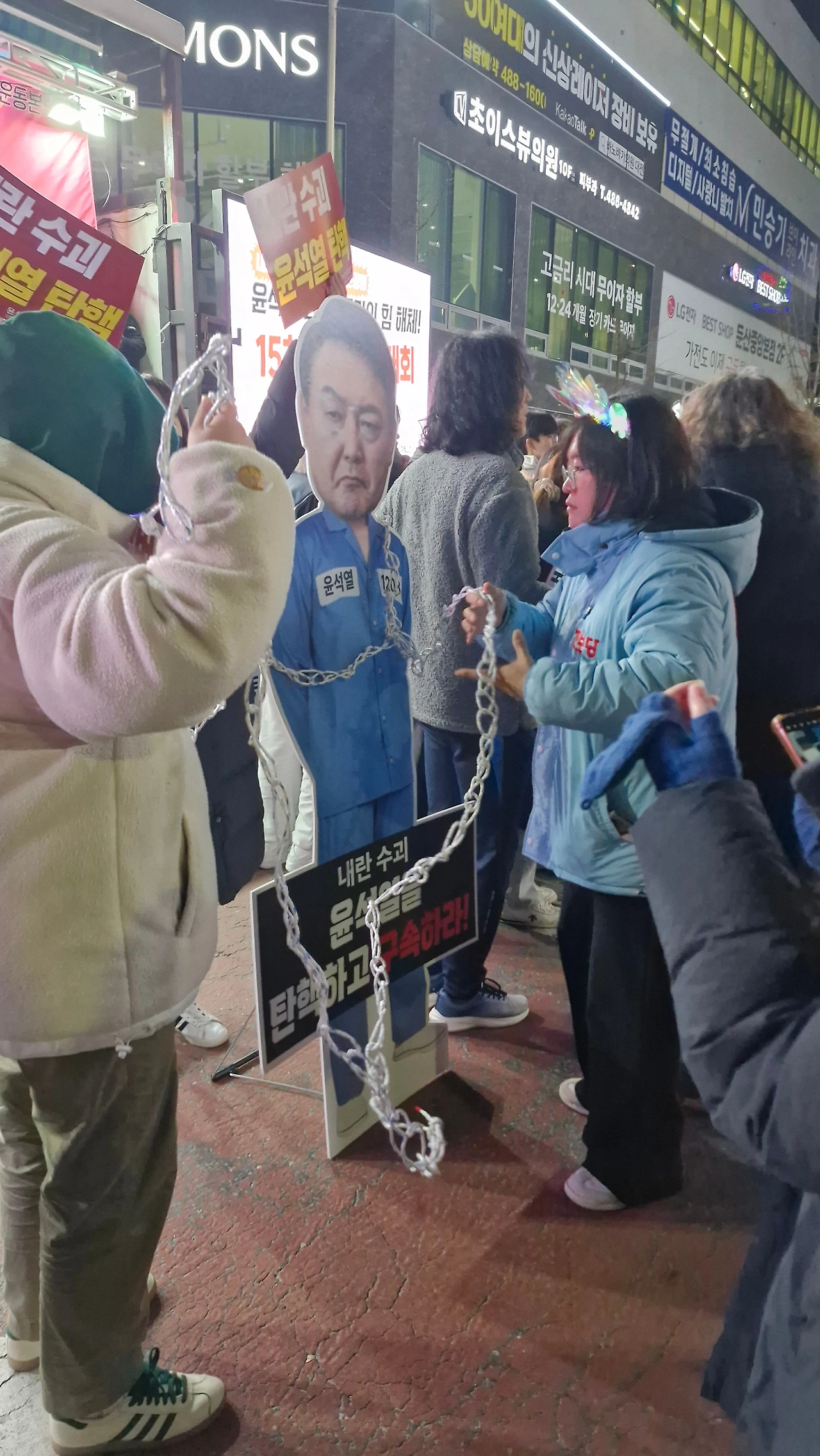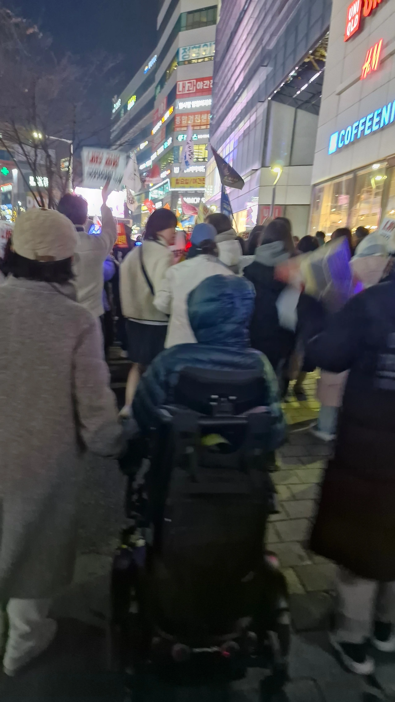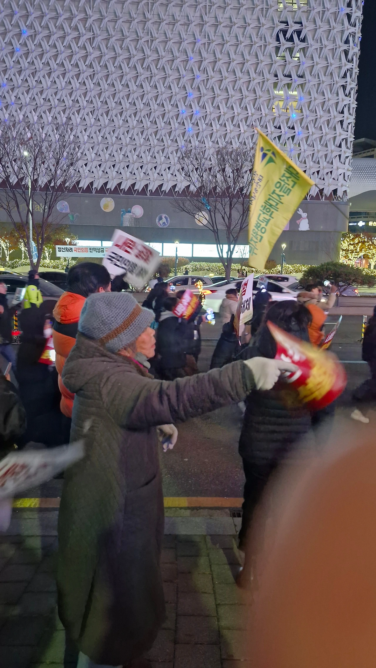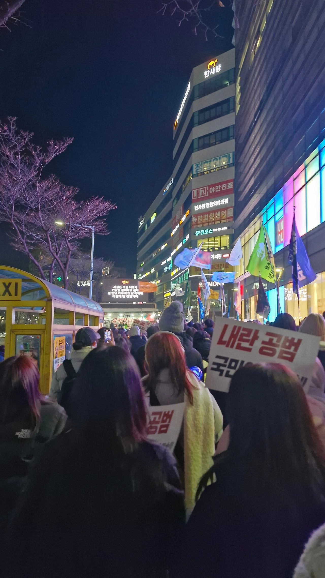 "내란범 윤석열을 탄핵하라! 내란공범 국민의 힘을 해체하라!"를 시민들과 함께 외치며 은하수네거리에서 시작해 이마트사거리를 거쳐 경성큰마을사거리까지 행진했다가 갤러리아 맞은편 은하수네거리에서 9시에 마무리를 했답니다.
