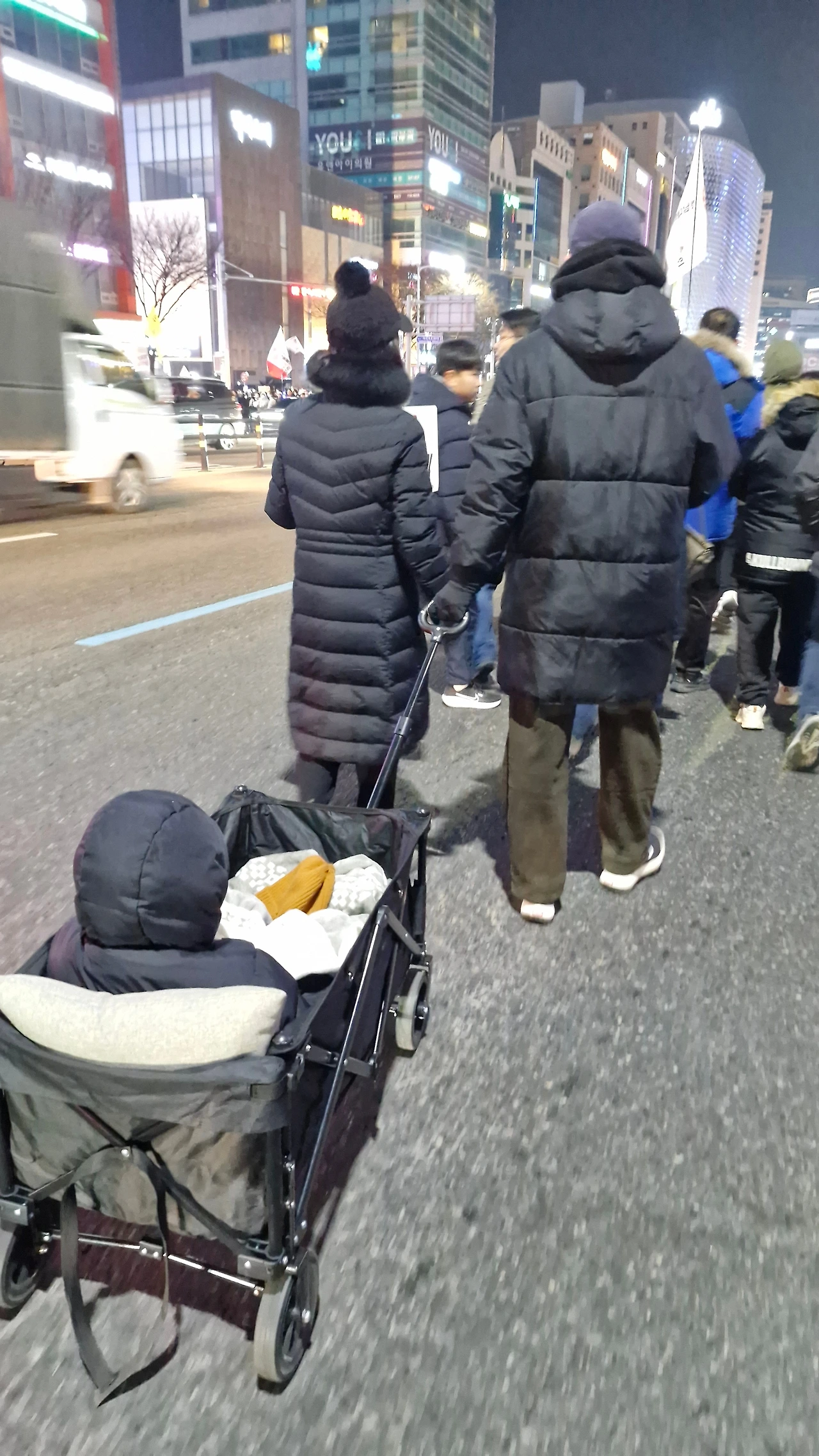 수많은 시민들이 탄핵집회에 참여해 구호를 외치며 행진했는데요, 그 가운데엔 이제 막 걸음마를 하기 시작한 아기부터 유모차에 탄 유아, 엄마 아빠 손을 꼭 잡고 가는 어린이, 중고등학교 학생들, 휠체어를 탄 장애인들, 각양각색 경광봉을 든 젊은이들, 중장년층, 노년층에 이르기까지 모든 세대가 참여해 한마음으로 윤석열 탄핵을 외쳤어요. 참여한 모든 이들의 열기와 길에서 이를 지켜보며 응원하는 시민들의 관심으로 한겨울 추위가 전혀 느껴지지 않은 시간이었답니다.