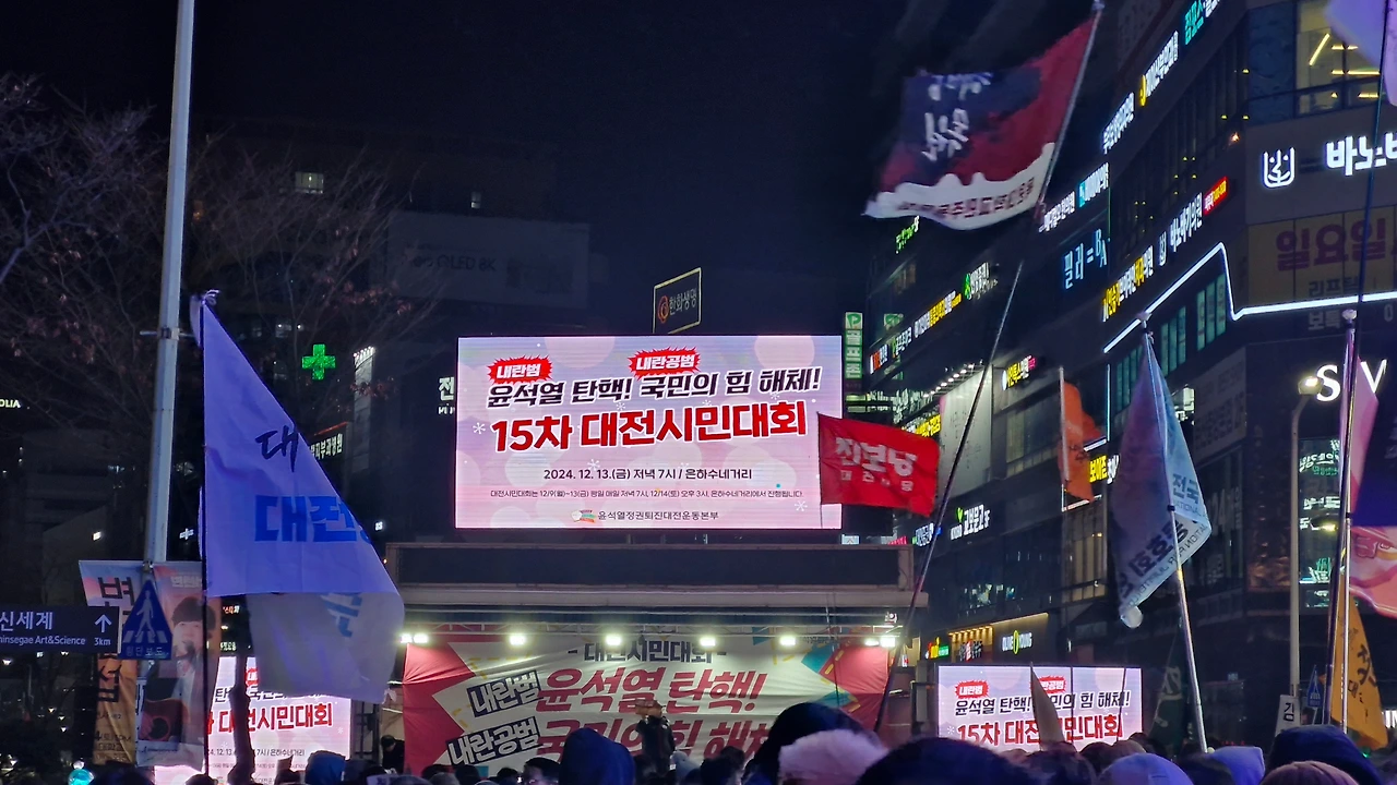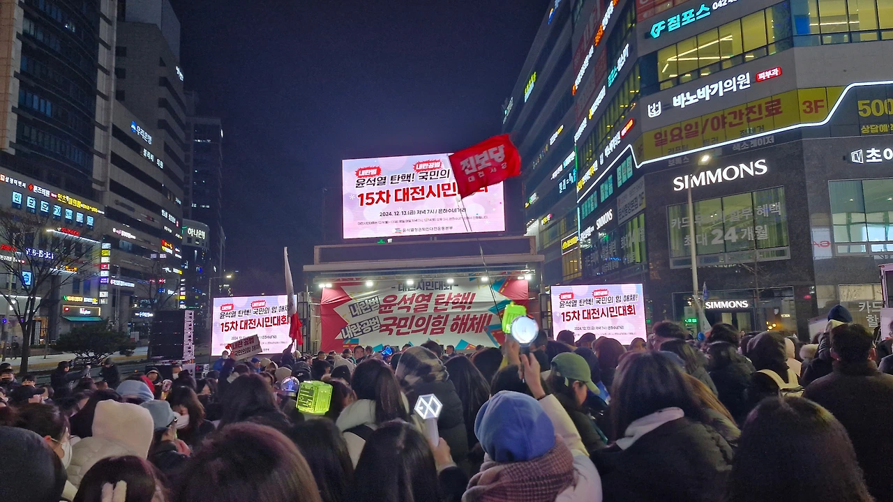 2024년 12월 13일 금요일 저녁 7시에 시작한 "윤석열 탄핵 국민의 힘 해체"를 주제로 내건 탄핵집회 15차 대전시민대회에 다녀왔어요.