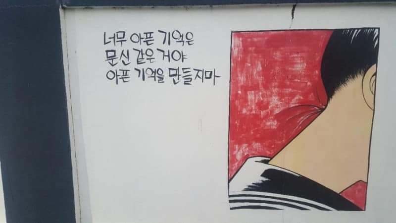 이제까지 본 벽화 중 가장 알찬 벽화거리였다. 만화를 그냥 빈 벽에 그린 것이 아니라 마을 전체의 분위기와 장소, 해가 뜨고 질 때의 모습 등을 고려하여 작품을 전시했다고 한다.