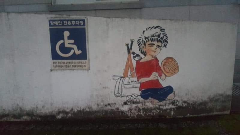 울진 매화리에 있는 이현세 벽화거리. 1982년 오혜성(까치)과 엄지, 마동탁을 주인공으로 한 '공포의 외인구단'이 선풍적인 인기를 끌며 86년 감독이름을 딴 '이장호의 외인구단'으로 영화화되기도 했던 한국만화의 신화적 존재 이현세.