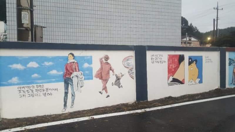 그의 고향이자 만화의 배경이 된 마을에 만화벽화거리를 조성하겠다는 계획을 울진군이 알리자 이현세작가가 문하생 20명을 보내 40일간 작업한 결과물이란다. 제자들이 스승의 이름을 걸고 그린 덕에 예술성 높은 벽화거리가 되었다. 그리고 매화리 마을주민들이 정말 신경써서 거리를 깨끗하게 관리하고 있다는 인상을 받았다.