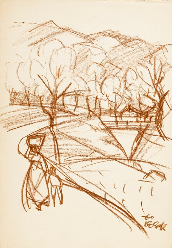 당시 이중섭은 큰 전시를 치르고 일본에 있는 가족을 만나러 갈 계획이었지만 그림이 팔리지 않아 일본으로 가지 못 하고 그 이후 건강악화로 동선동에 있는 정신병원에 머물게 된다. 그런 그를 정릉에 살고 있던 박고석이 집으로 데려와 함께 살았다고 한다. 그래서일까. 정릉에서 남긴 이중섭의 작품들은 쓸쓸하고 외로운 느낌이다.