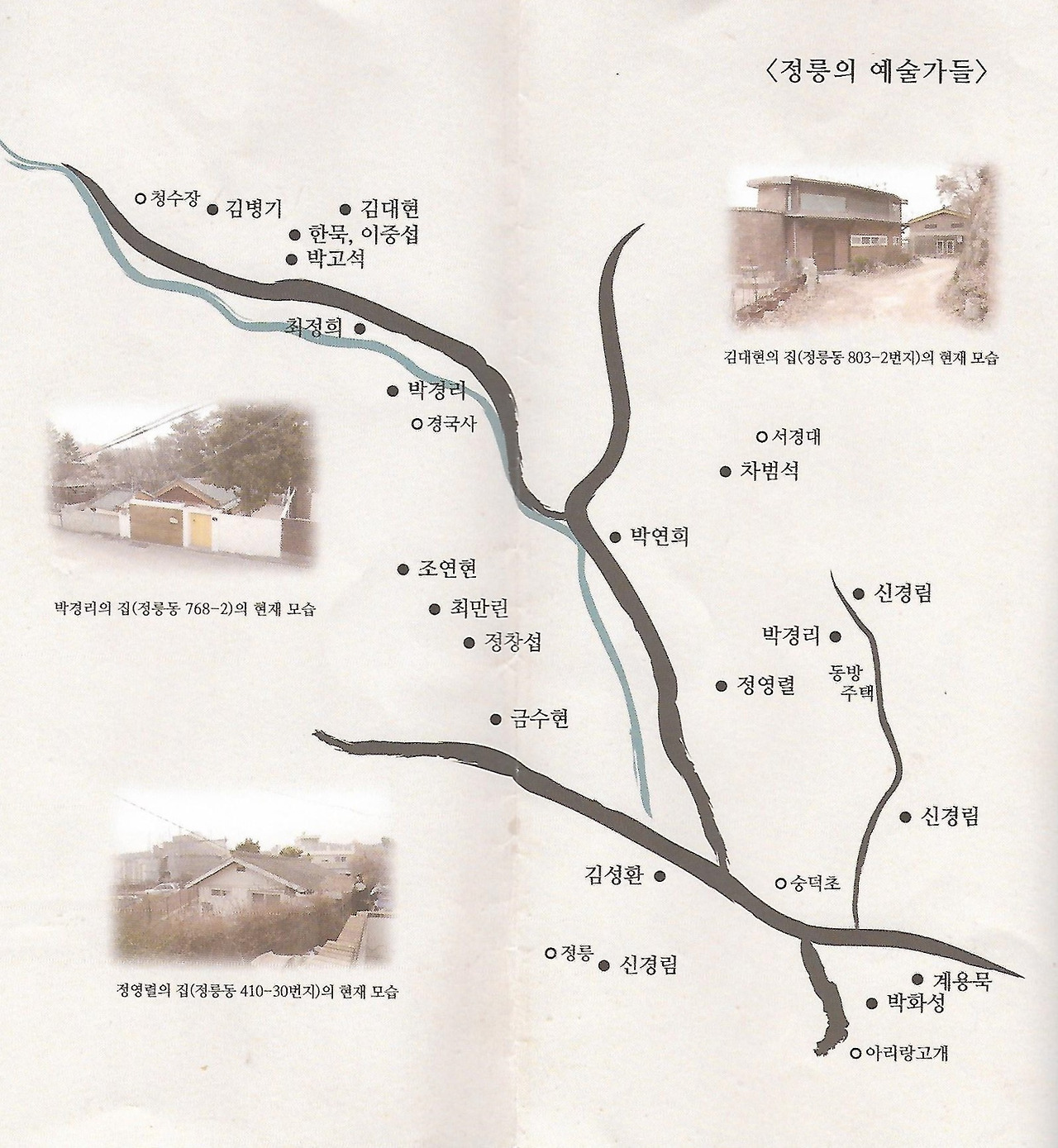 성북은 예전부터 문화예술 활동이 두드러진 지역이다. 성북동에는 이미 많이 알려져 있듯이 이태준, 조지훈, 한용운을 비롯해 많은 예술가들이 살았다. 이웃 동네인 정릉 역시 많은 예술가들이 삶의 터전으로 삼았던 동네이다. 6.25 전쟁 이후 부산 등지로 피난 갔던 사람들이 서울 여러 곳으로 모여들었는데 정릉도 그 중 하나였다고 한다. 그렇다면 정릉에는 어떤 예술가들이 살았을까?