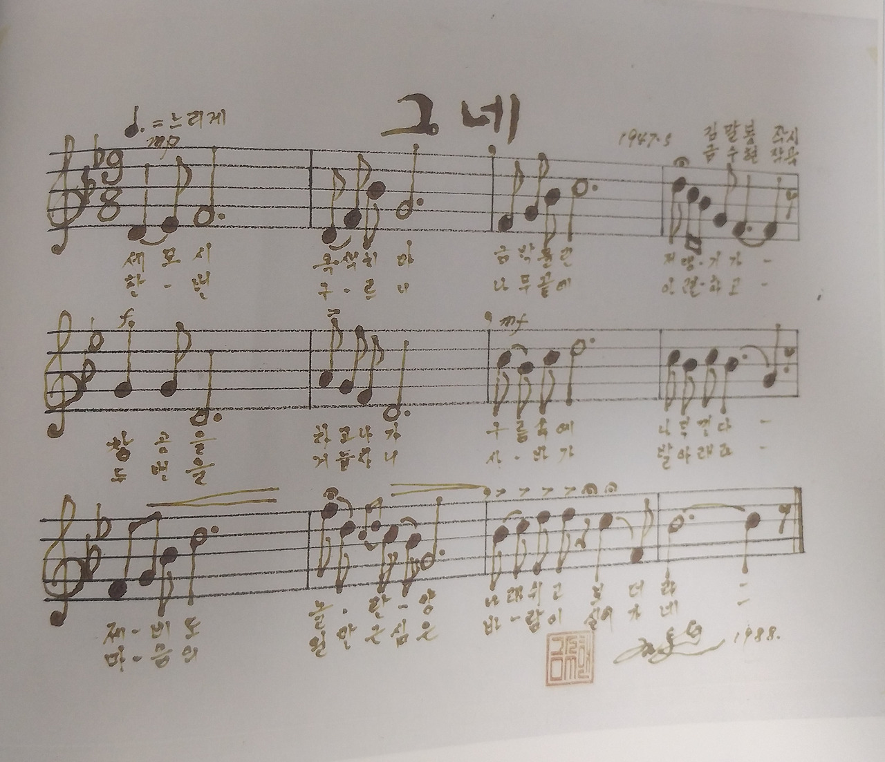 그는 장모이자 소설가인 김말봉이 지은 시 ‘그네’를 듣고, 그대로 곡을 붙여 국민들의 애창 가곡인 <그네>를 탄생시켰다. 한글교육에 관심이 많았고, 본래 성이었던 ‘김(金)’을 ‘금’씨로 개명했다. 자녀이름 또한 한글로 지었는데 세계적인 지휘자 금난새가 그의 아들이다.