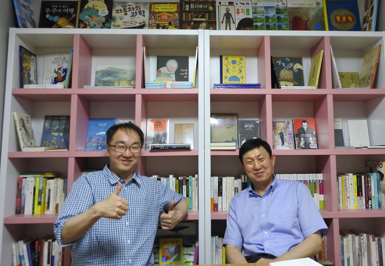 마을온예술 후원자 조합원인 김정훈 선생님과 조광식 선생님을 <호박이넝쿨책>에서 만났다. 일반 조합원이 현재 마을온예술과 함께 활동하고 있는 분들이라면 후원자 조합원은 지금 당장은 참여가 힘들지만 앞으로 마을온예술과 함께 할 무언가를 만들고 싶은 분들이라 말할 수도 있겠다.