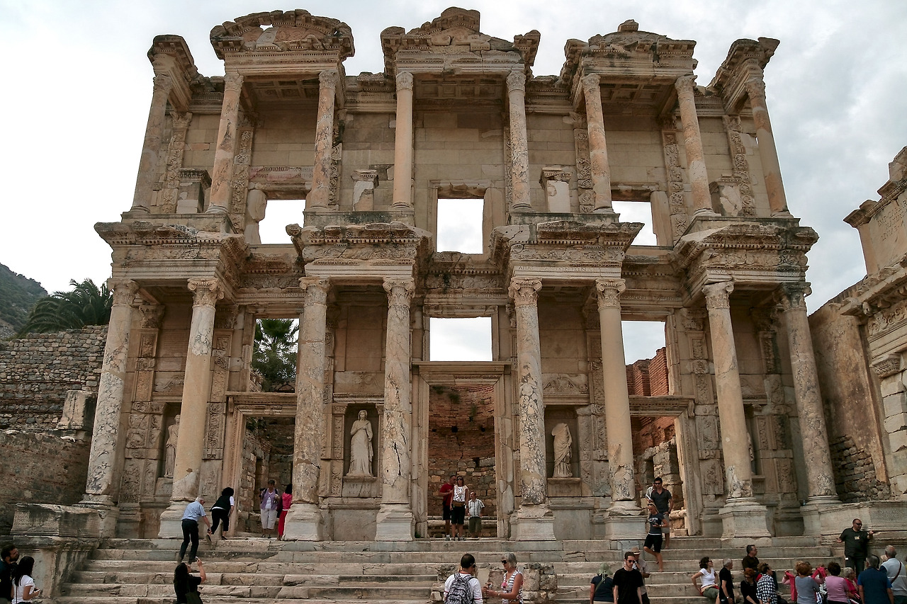 에페소 유적지는 동양인 관광객으로 넘쳐나고 삼성이 입구에 세워 놓은 안내판은 잠시나마 으쓱한 기분을 느끼게 했다. 아들의 취향에 꼭 맞는 이곳은 생각보다 너무 광활하고 남아 있는 유적(하드리아누스 신전, 스콜라 스티카 욕장, 헤라클레스의 문, 니케 여신 부조 등)도 많아 오랜 시간 우리의 발길을 붙잡았다. 특히 셀수스 도서관의 지혜, 덕성, 학문, 지식을 섬세하게 표현한 4대 여신상(진품은 박물관에 있고 비록 모조품이라 해도)의 아름다움과 엄청난 규모의 야외 음악당은, 스피커와 마이크도 없는 그 때 그 시절에 어떻게 소리가 전체 객석에 울려 퍼질 수 있었을까? 생각하니 그저 놀라울 뿐이다. 현재보다도 더 과학적으로 육성을 전달시킬 수 있었다는 것이 그저 대단했다. 야외 음악당은 좀 더 오래 보존시키고자 지금도 보수공사가 시행되고 있었다. 에페소 유적지는 아직도 땅을 파면 유적이 발굴되고 있고, 앞으로도 계속 발굴 작업이 이뤄질 예정이란다.
