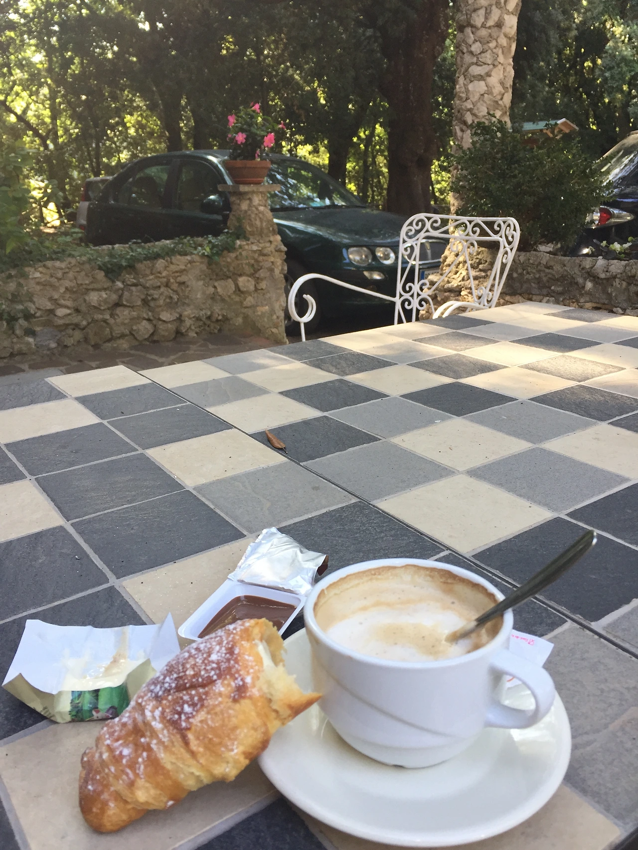 점심식사 후 한 손에 카푸치노를 들고 호텔을 나와 테라스에 앉아 주변을 둘러봤다. 성인들은 들판에서 일광욕을 하고 아이들은 원반던지기 따위를 하며 시간을 보내고 있다. 햇빛 알러지 때문에 일광욕은 못하지만 그늘에 앉아 커피를 마시며 숲냄새를 맡는 것 만으로도 충분히 즐겁다.