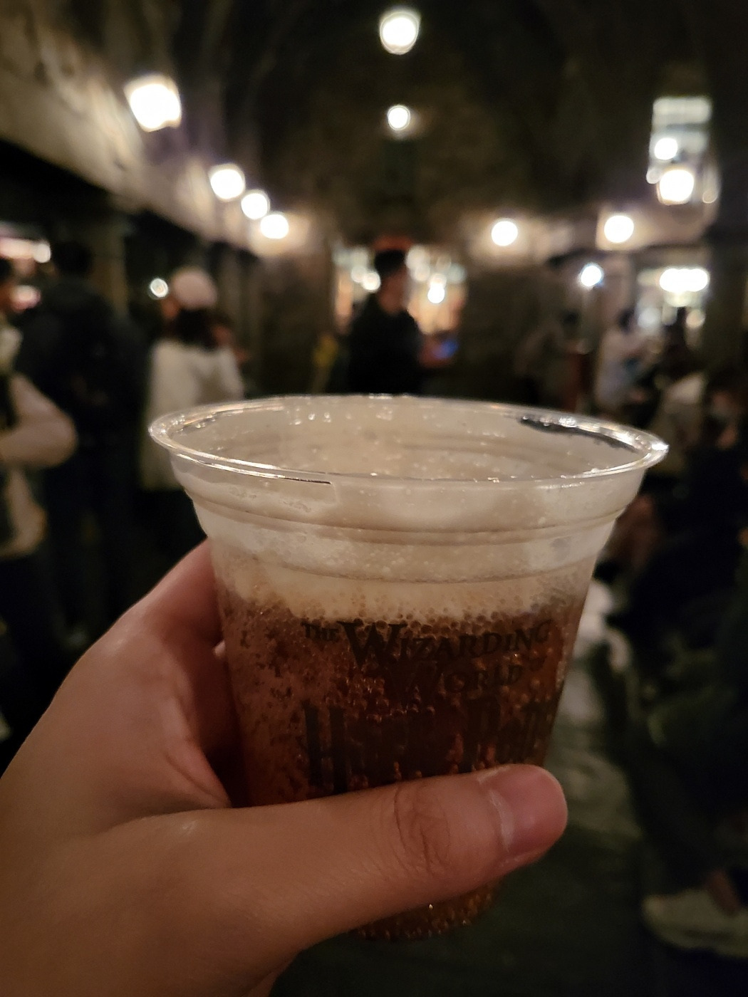 이때, 방씨가 말했다. "여기 버터맥주가 맛있는데 이거 꼭 먹어야해!" 그러나 이어진 엄청난 줄에 방씨는 거의 반 포기 상태가 되었다. 하지만 기념품 상점을 다 둘러본 우리는 익스프레스권 (줄을 안서고 탈 수 있는 입장권)이 8시이기에 시간이 조금 남은 것을 알았고 방씨는 긴 줄을 섰다.