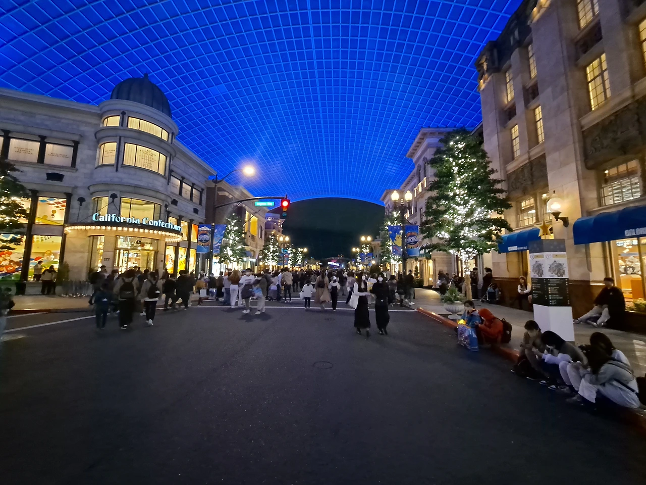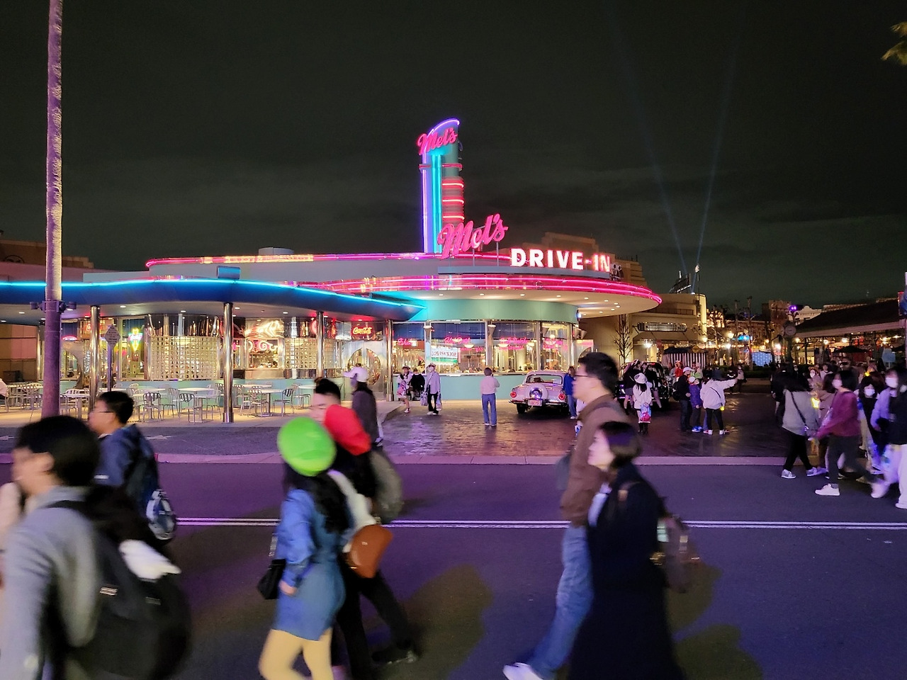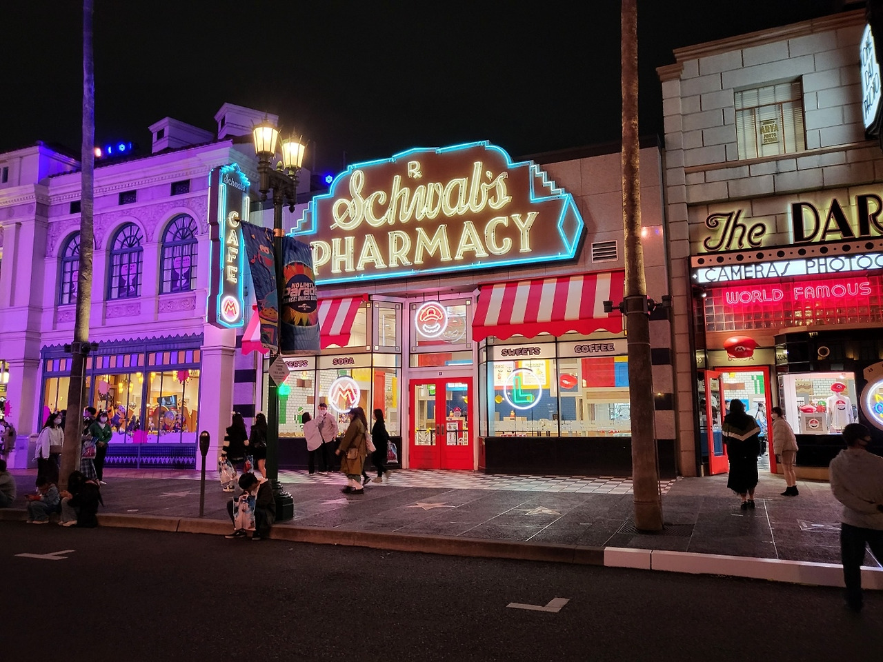 저녁 9시에 가까운 시각에 돌아가는 길에서 본 유니버셜의 거리는 매우 아름다웠다. 색색의 네온사인들이 존재감을 뽐내고 있었으며, 테마파크의 분위기 또한 한층 살려주었다.