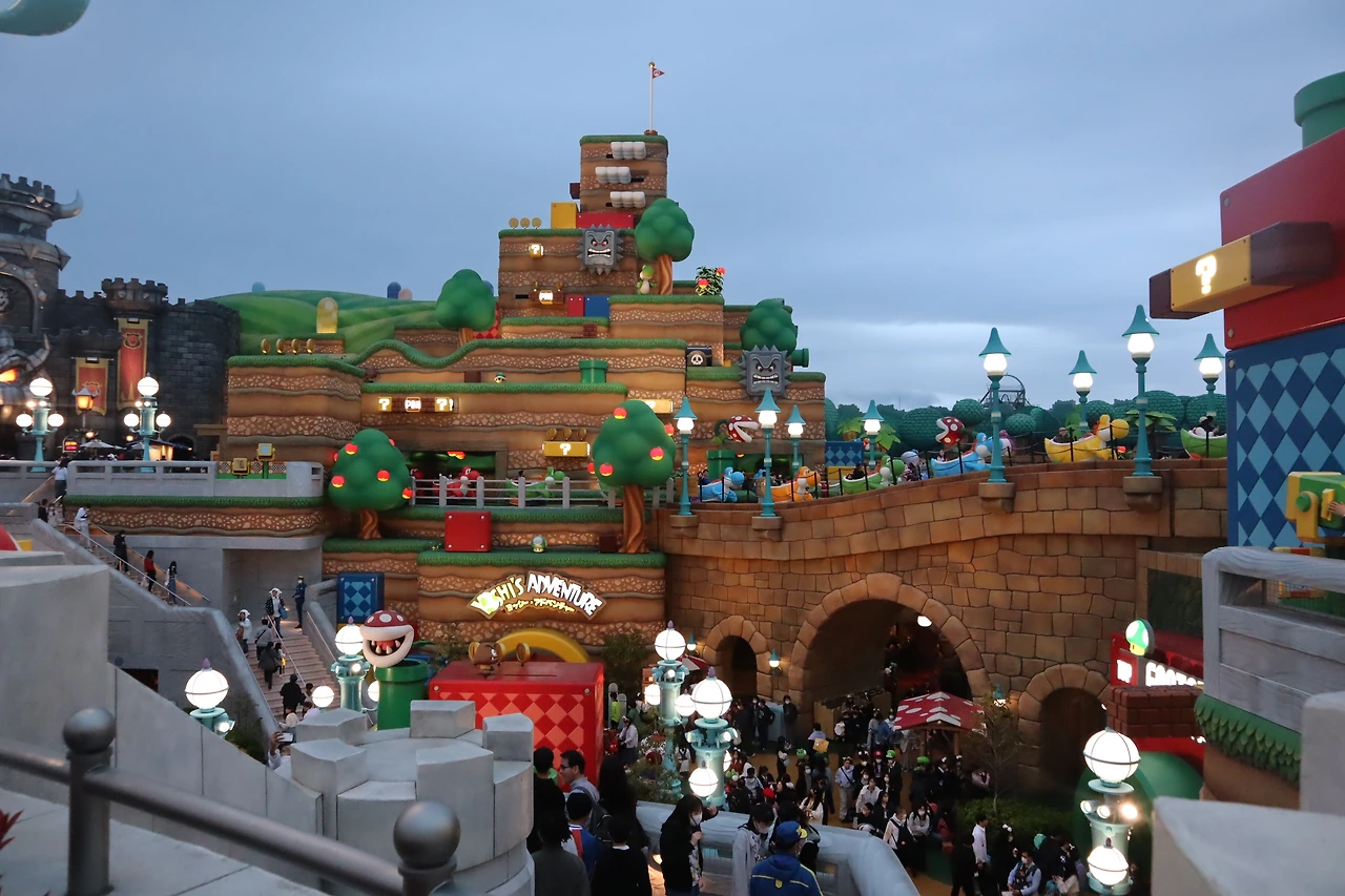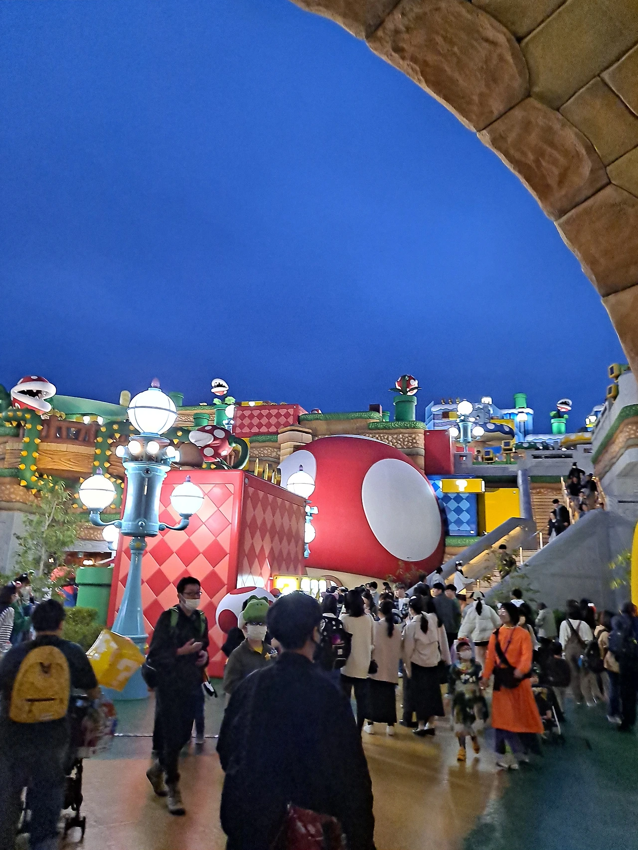 파이프를 통해서 나온 풍경은 이미 해가 떨어지고 있는 상황이었지만 장관이었다. 멋진 색감과 싱크로율 100%의 캐릭터들이 있었고 내가 볼 수 있는 시야의 모든 공간이 마리오 게임의 장면과 같았다.