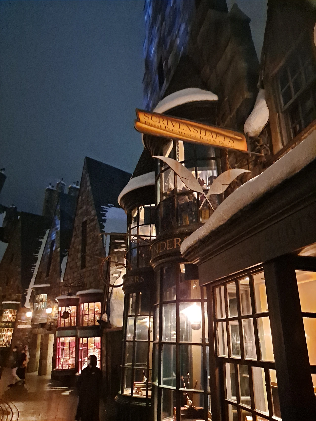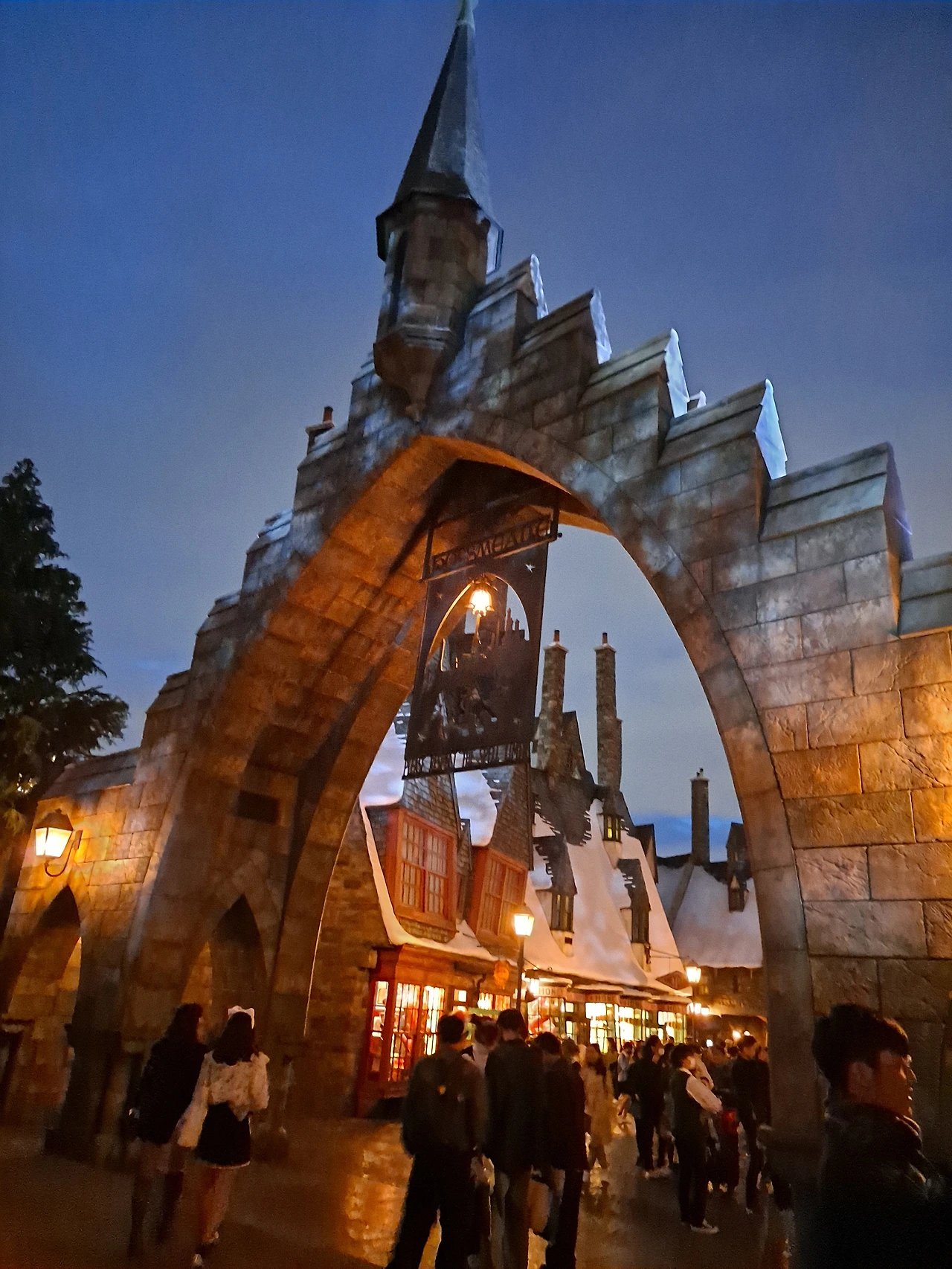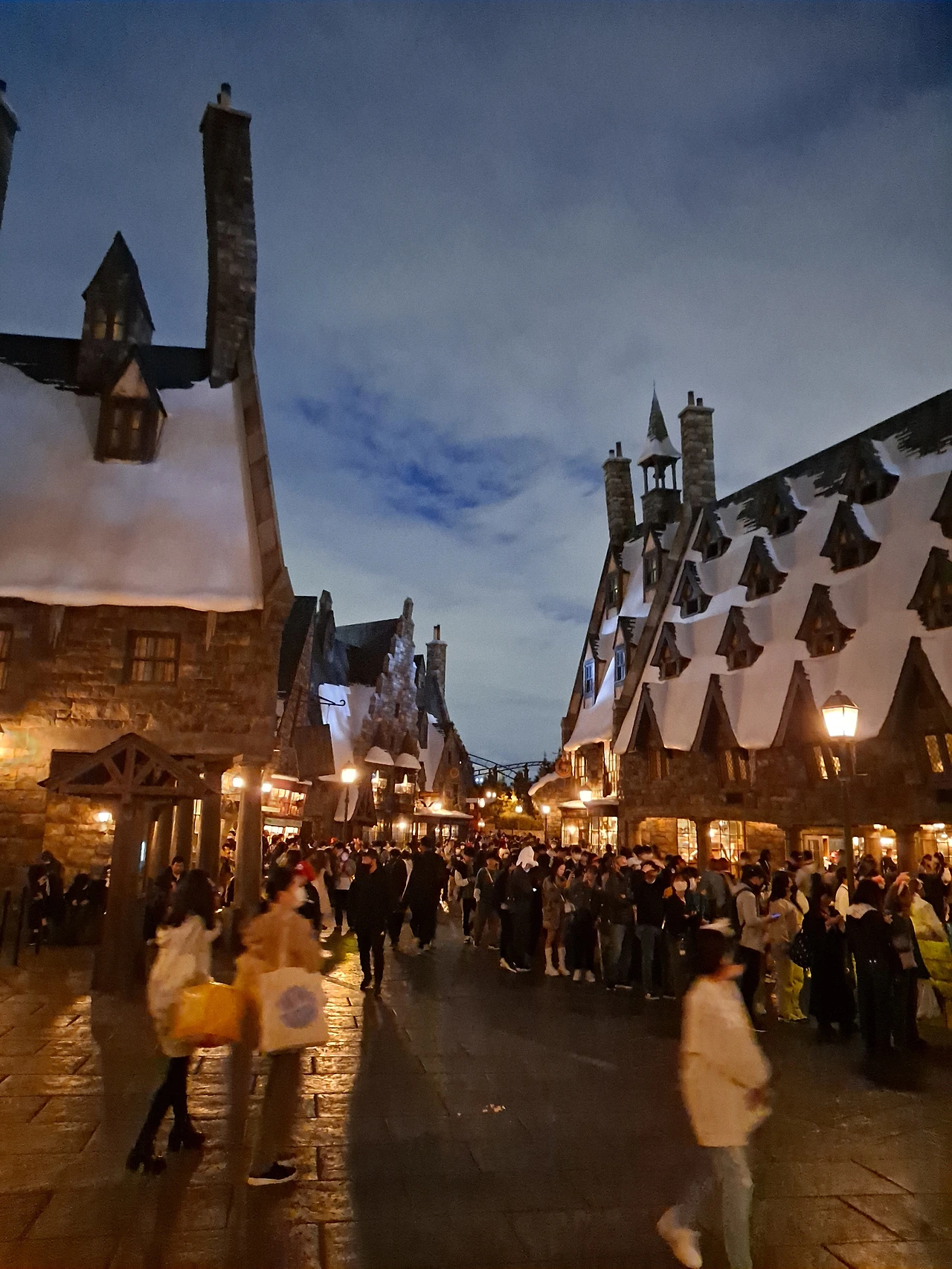 드디어 입장이 허락되는 저녁 7시가 되어 해리포터 에어리어로 진입하게 되었다. 마리오월드와 달리 그 시간에 입장권을 확인 하는 인원이 없어 괜히 기다리지 않았나 라는 생각이 들었지만, 밤의 해리포터 존은 정말 영화 속의 분위기를 빼다 박았다.