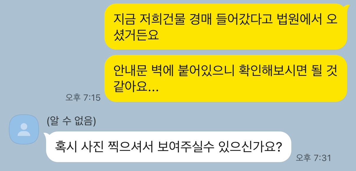 마철이는 그날 밤 단톡방에 경매개시결정문를 올렸다.