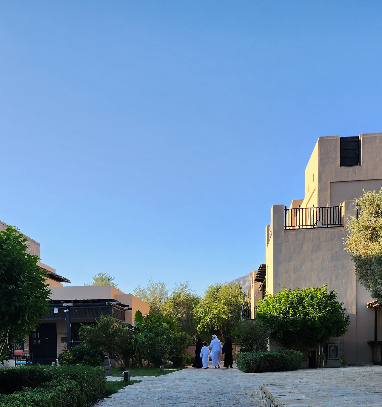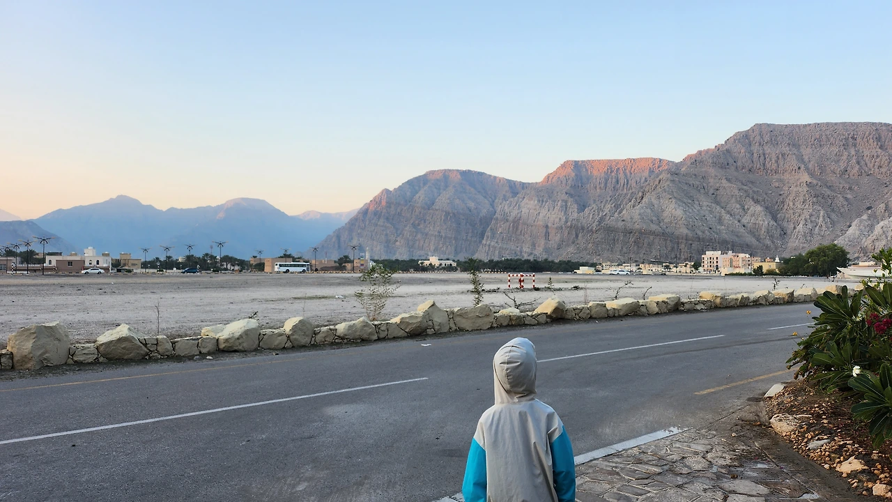 12월 중동 국가들은 여행하기에 황금기라 할 정도로 날씨가 좋다. 한국에서 딱 '아 이제 가을 왔구나.' 하고 느끼는 아침 첫 공기같이 선선한고 습도는 낮다. 얇은 재킷하나 걸치고 아침 산책하기 좋은 날씨. 오만 무산담도 예외는 아니라, 네 식구는 아침 산책을 시작했다.