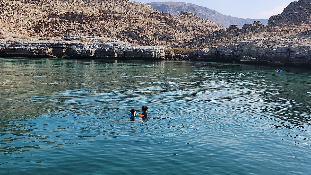 배에 올라와 바다를 보니, 내 성화에 수영을 할 수 있어도 암튜브를 한 남편과 4살 꼬맹이 딸이 망망대해에서 헤엄을 치며 웃고 있었다. 튜브 없이 멋진 수영복을 입고 수영을 하는 외국인 커플만큼 볼품이 나지는 않았지만, 든든한 아빠 손을 잡고 바다를 떠다니는 아이의 모습에, 오만에서의 이 경험이 아이가 살아가는데 얼마나 큰 힘이 될지, 아빠를 떠올리는 한 장의 추억이 될 생각 하니 가슴 한편이 뭉클했다.