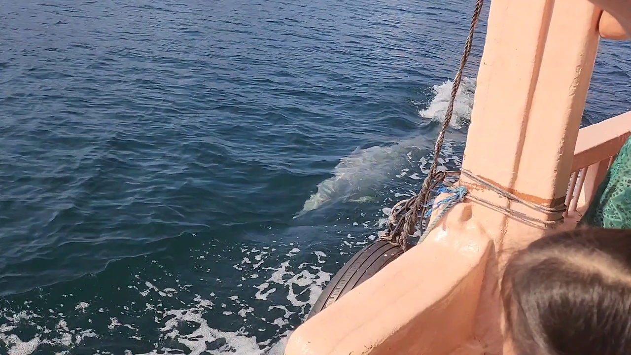 속력을 줄이더니 배가 멈췄다. 배의 선장아저씨가 멀리 손가락을 가리켰다. 반짝반짝 빛나는 수많은 물결 사이 동그랗게 포물선을 그리며 물속으로 슬로 모션으로 들어가는 무언가가 보인다.