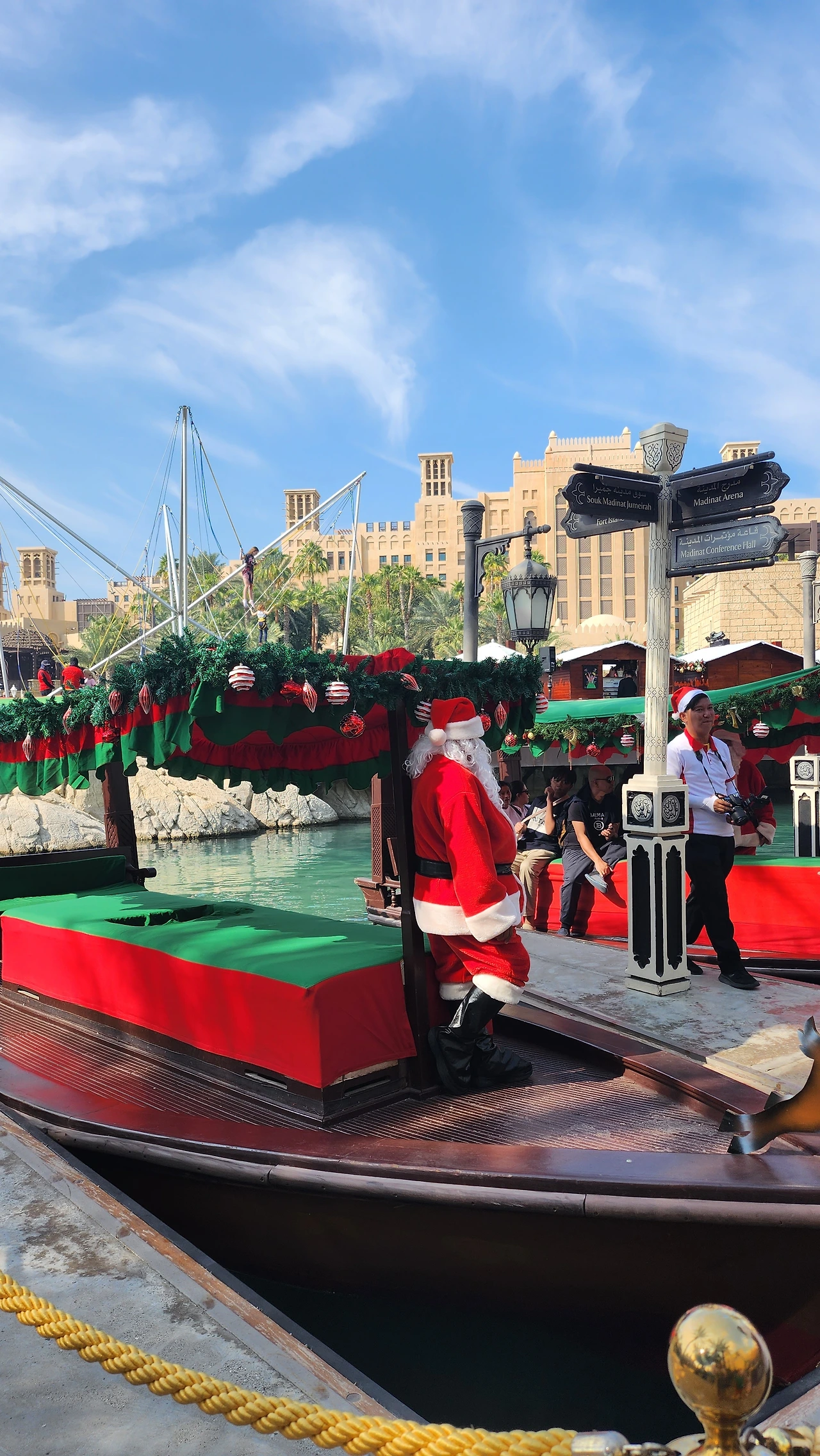 크리스마스 역시, 이슬람 국가를 제외한 세계 각국의 특별한 기념일임은 분명하니, 두바이에서도 국경일만 아닐 뿐, 세계인의 축제를 방해하지 않는다. 오히려 북돋아준다. 유럽만큼의 역사 있는 크리스마켓은 없지만, 부르즈 알 아랍이 보이는 메디낫숙에서는 그냥 봐도 어설픈 산타가 끌어주는 보트가 보기와 달리 꽤 낭만적이고, 엑스포가 열렸던 엑스포시티에서는 커다란 돔형태의 LED화면에 휘황찬란한 크리스마스 영상들과 가짜 눈, 그리고 산타할아버지와 산타할머니까지, 꽤 크리스마스분위기를 느낄 수 있는 두바이식 크리스마스 행사들이 열린다. 아기 때만 눈을 즐겨본 우리 집 꼬맹이들은 가짜 눈만 봐도 좋아라 한다. 나 역시 어디 가든 반짝이는 장식들에 꽤 맘이 들뜬다.