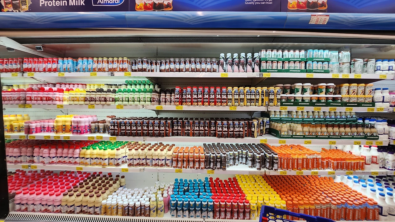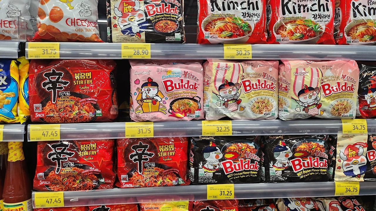 과자나 우유 등의 매대는 세계 각국의 먹거리가 모였으니 종류도 종류이지만, 그 분류기준이 포장지의 색상과 디자인인 건지, 보기에 무슨 팝아트 작가의 그림 같기도 하다. 한국의 불닭볶음면도 질서 정연한 두바이 매대의 미감에 한몫하고 있다.