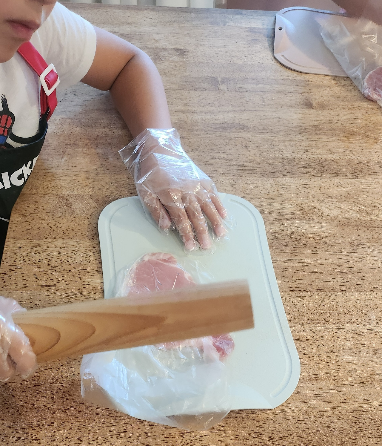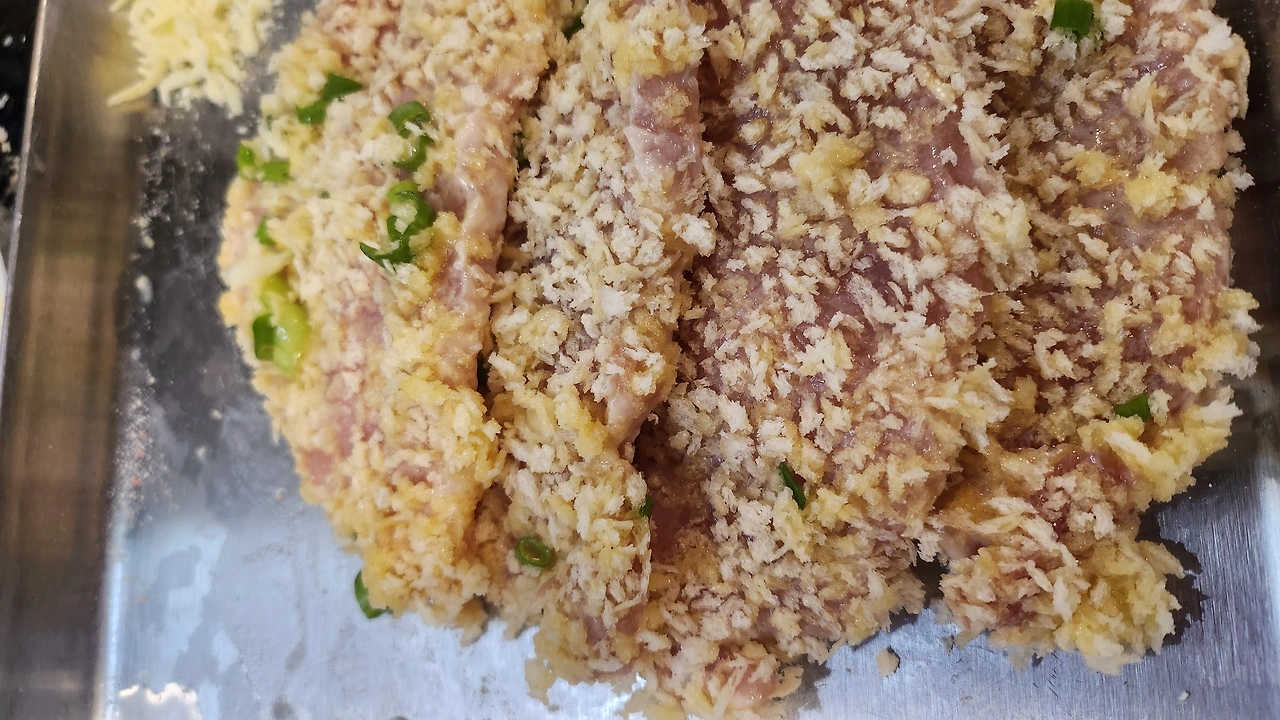 영국산 돼지고기는 기름이 거의 없어 손질할 것 없이 밀대로 두드린 후, 밀가루-계란물 -빵가루 순으로 묻혔다.
