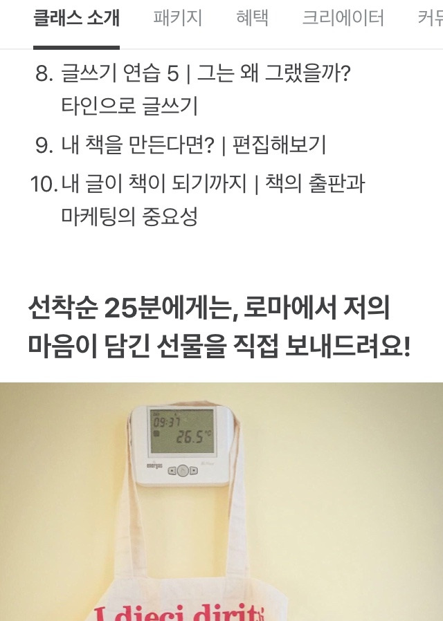 11월 7일까지 블라인드 펀딩 중입니다. 펀딩 성공 후 개설 확정이 되면 1월 2일부터 강의 오픈됩니다. 새해부터 함께 지속하는 글쓰기를 시작해봐요. 블라인드 펀딩 기간 중 신청해 주시는 선착순 25분께는 제가 찍은 사진엽서 세트(20매 정도) #로마에살면어떨것같아 도서 그리고 로마에서 보내드리는 에코백이 함께합니다...