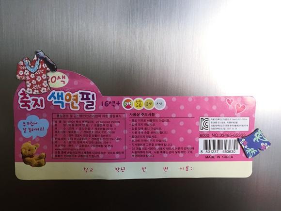 한국에서 사 왔던 색연필 포장지였는데 이걸 왜 붙였냐고 하니,