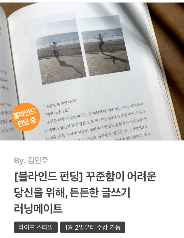 전문적인 글을 쓰는 사람은 아니지만 이런 경험을 누군가가 하게 된다면 그 누군가의 일상도 긍정이 될지도 모르겠다고 생각하고 [글쓰기 클래스]를 수락했다. 하지만 실현되기를 기대하지 않았는데.... 위의 글처럼 사랑을 받는다는 것은 인간의 의지를 벗어나는 건가..