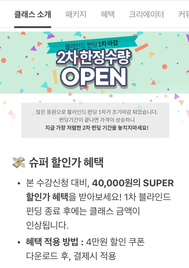 {1차 펀딩}이 성공해 버렸다. 아 모르겠다. 강의는 개설 확정이 되어버렸고? 2차 펀딩까지 열려버렸다. 난 그냥 파도에 몸을 실어보기로,