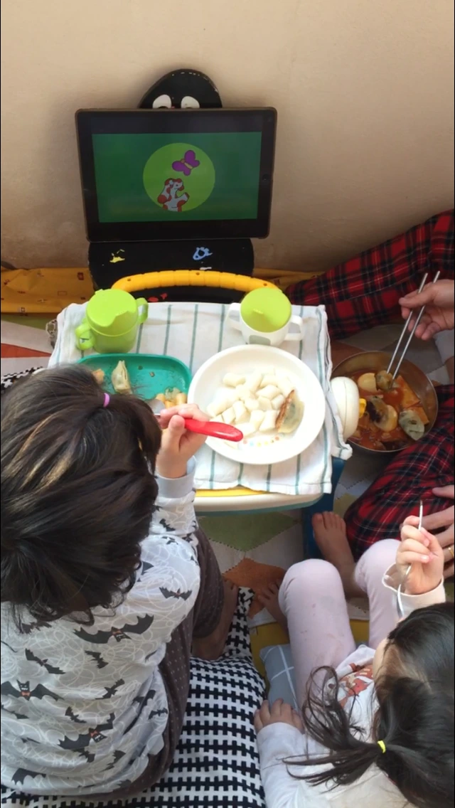 며칠을 힘들어하던 내가 기운을 차린 것을 축하해주려는 듯 남편은 특식을 준비했다. 분식 파티다. 학교 앞 떡볶이 레시피란다. 테라스로 볕이 가장 잘 드는 오후 야외 영화관을 오픈했다. 우린 몸을 접어 옹기종기 앉았다. 군만두를 떡볶이 국물에 찍어 한입 베어 물었다.
