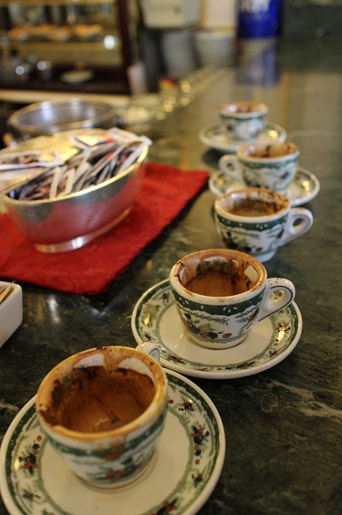 이 곳에서 커피를 주문할 땐 꼭, 카페 스트라파짜토(caffe strapazzato)라고 소리칩니다. 에스프레소를 뽑을 때 가장 먼저 나오는 제일 진한 커피 액에 설탕을 넣고 머랭 치듯 저어주면 놀랍게도 거품이 일며 말 그대로 커피크림이 만들어집니다. 증기로 데워진 잔에 커피크림을 한 스푼 넣고 그 위에 에스프레소를 뽑은 후 카카오 가루를 듬뿍 뿌려줍니다. 찐득하게 입 속으로 스며들어오는 커피가 금세 끝나는 게 아까워 잠시 멈추고 아껴먹고 싶지만 그 전율을 멈추기 싫어 단숨에 마셔버립니다. 커피잔이 이다지도 작은 것에 하염없이 원망하며……비워진 잔에 애꿎은 스푼만 달그락달그락 소리칩니다.